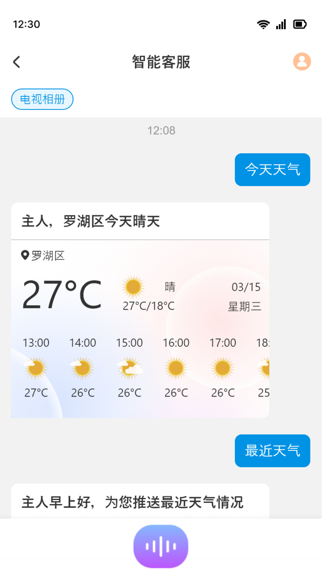 爱家宝是茁壮网络推出的一款APP应用。借助爱家宝APP,用户能够对家中的智能设备进行操作,像控制空调的开关、调节灯光的亮度以及电动窗帘的开合等;可以对自己和家庭成员的观影活动进行管理,例如管理个人收藏与观看历史,还能给家人分享预约的节目;能够使用多种智能服务,比如本地天气发生变化时,智能客服会给出出行提醒,能够一键控制全屋设备,设备状态异常时会收到提醒,回家或者离家时也能享受到便捷服务。其操作和设置并不复杂,智能管家会在用户每次打开APP时,推送用户所需的服务,当用户表达需求时,能智能地将其转化为对智能设备的操作指令,在家人使用智能设备(如血压仪)时,如果出现健康数据异常的情况,会及时通知用户。