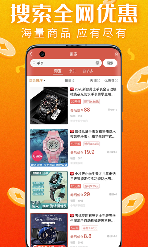 网购海量低价商品领券立减,淘宝/京东/天猫/拼多多付款发货,安全又可靠!