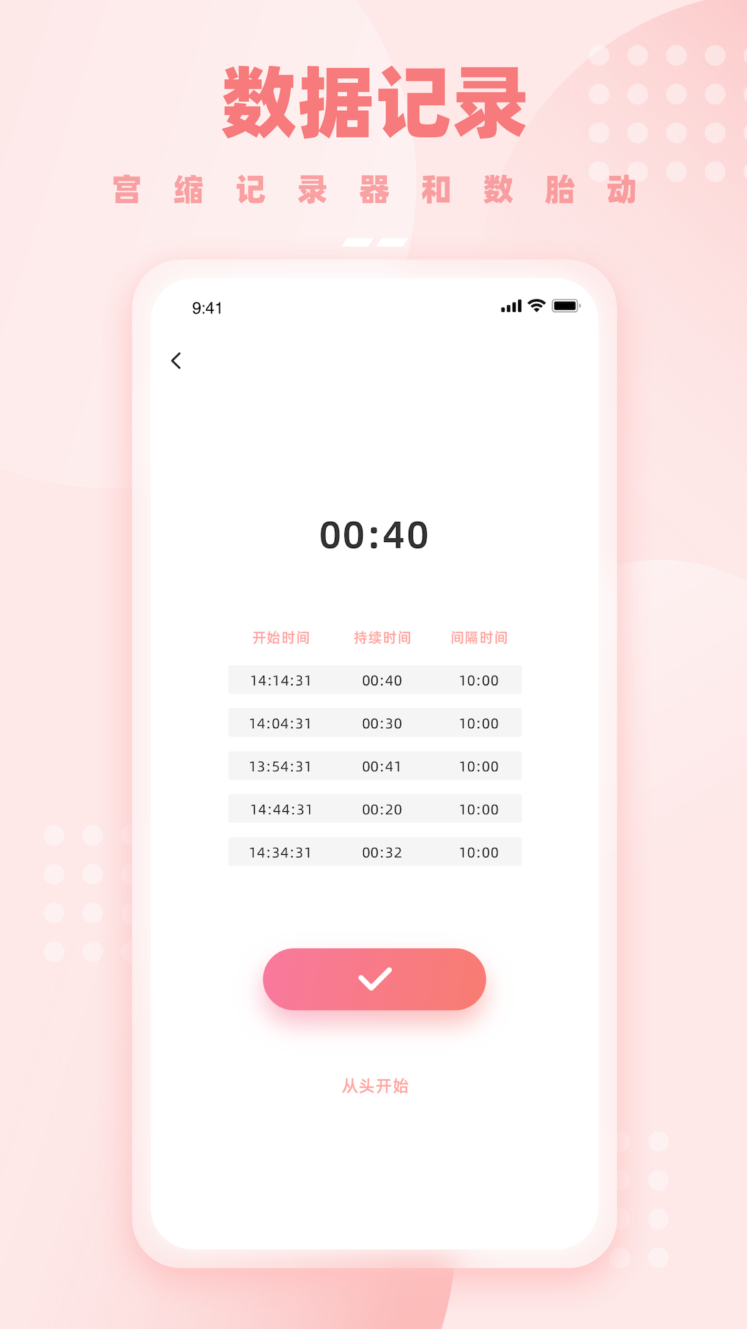 - 具备数胎动功能,可使用踢腿计数器记录宝宝的胎动情况。