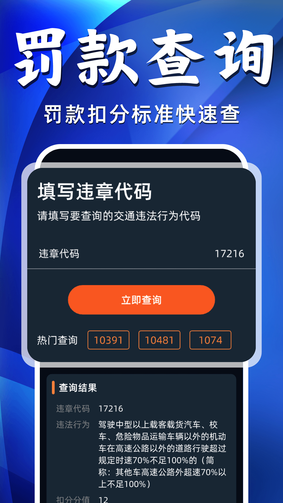 简单输入违章代码,即可一键查询违章处罚代码的详细含义,包括具体的违章违法行为说明、扣分分值、罚款金额等信息,帮助您了解掌握处罚规定。