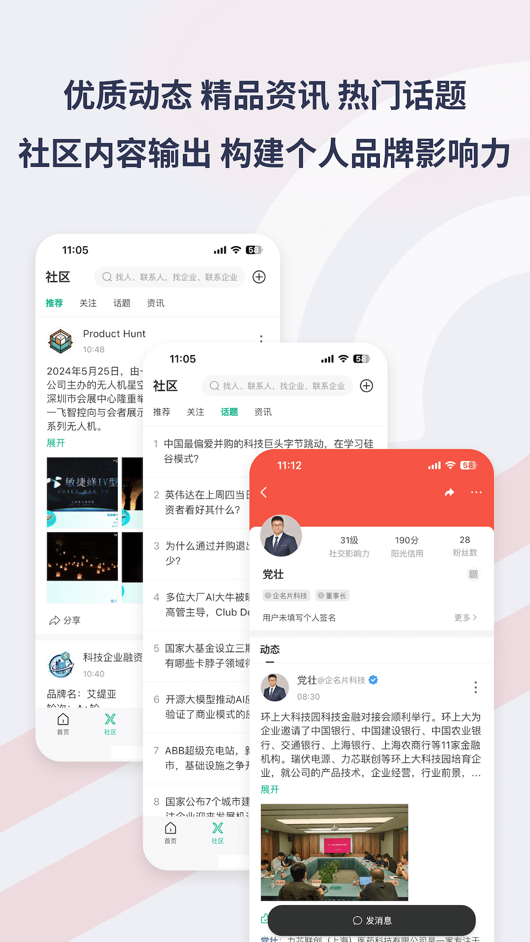 【即时无限畅聊】此平台汇聚了同行、校友以及企业分享的信息流,在平台上,只需一键操作就能联系到高质量的人脉或者企业。