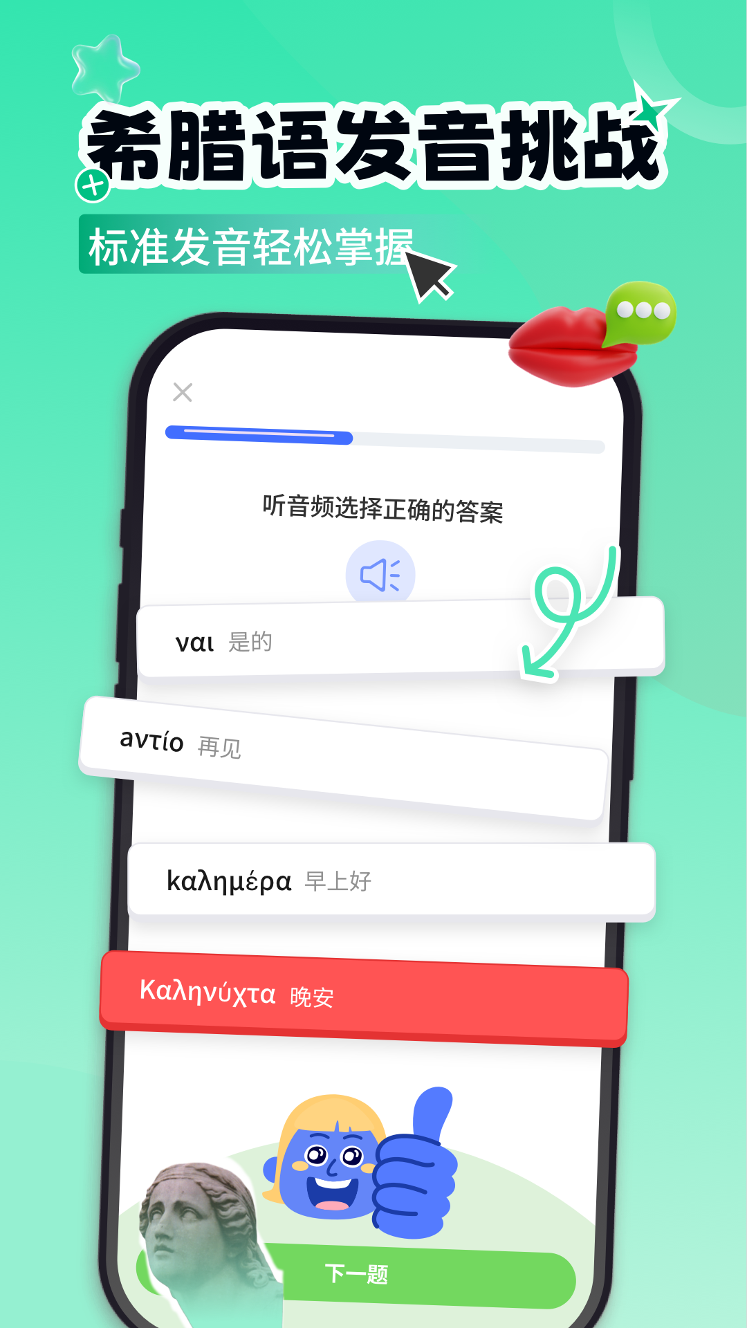 专业的希腊语学习软件,助力希腊语学习,出国旅游沟通无障碍。