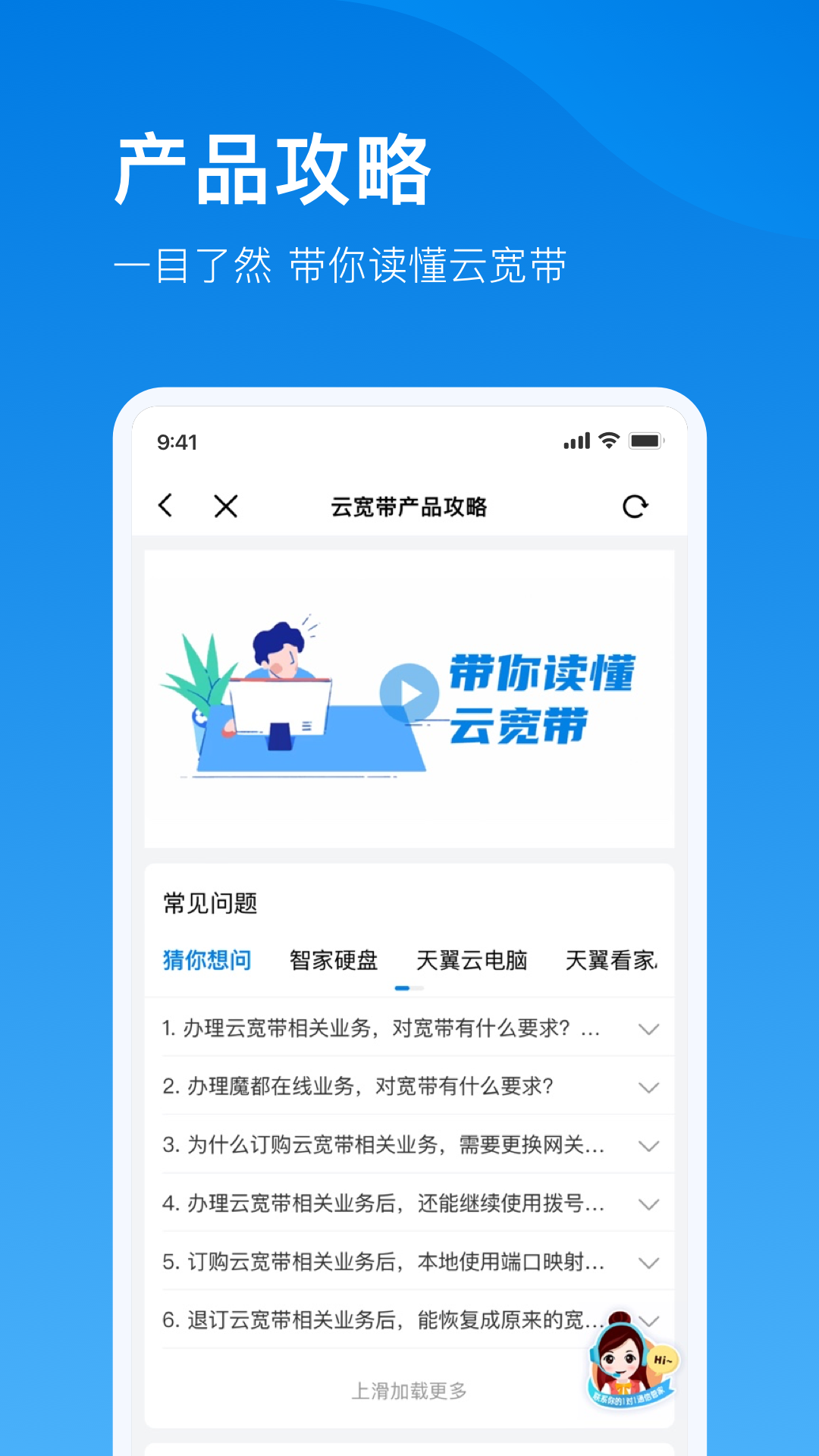 不管您在什么地方,只要打开电信云宽带App,就能立刻享受云宽带专属服务: