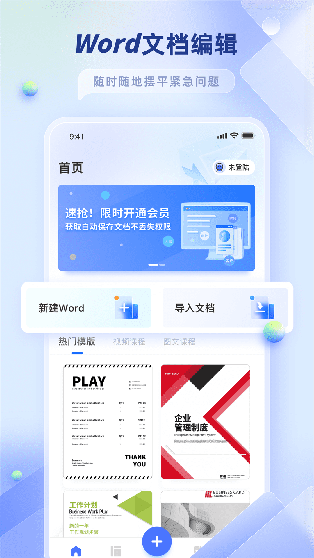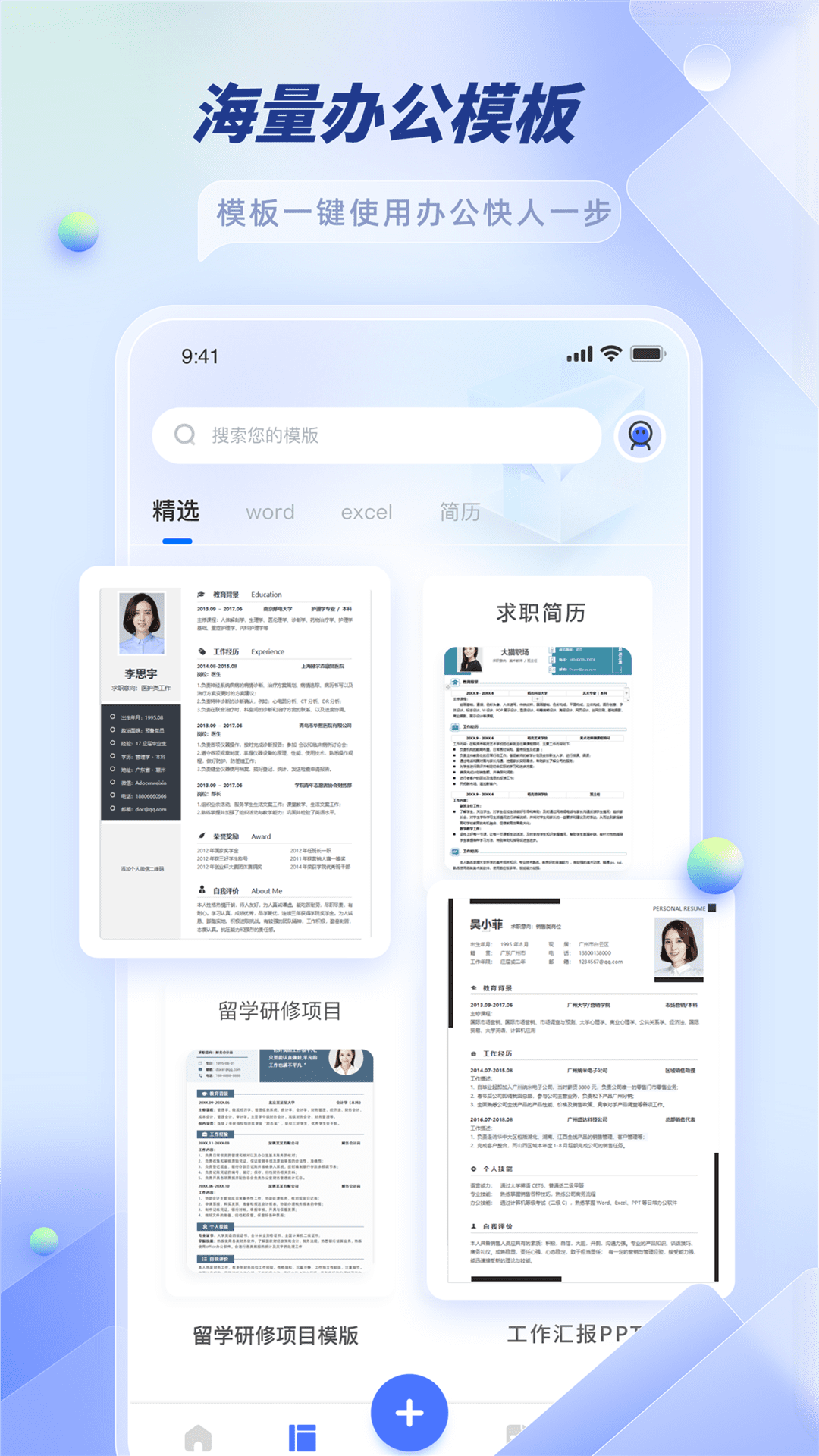 在相关应用里,还提供多种Word模板可供下载使用。
