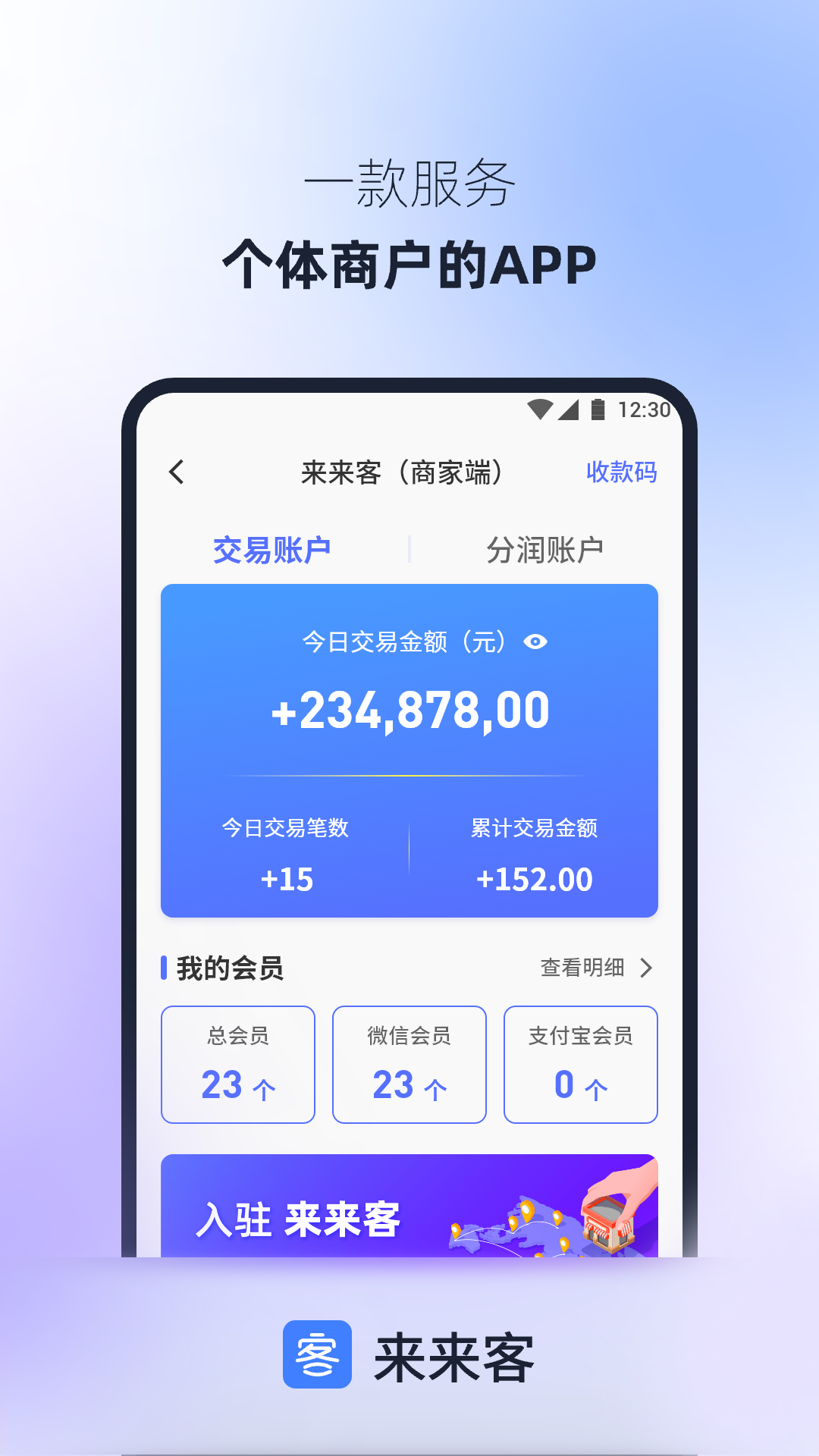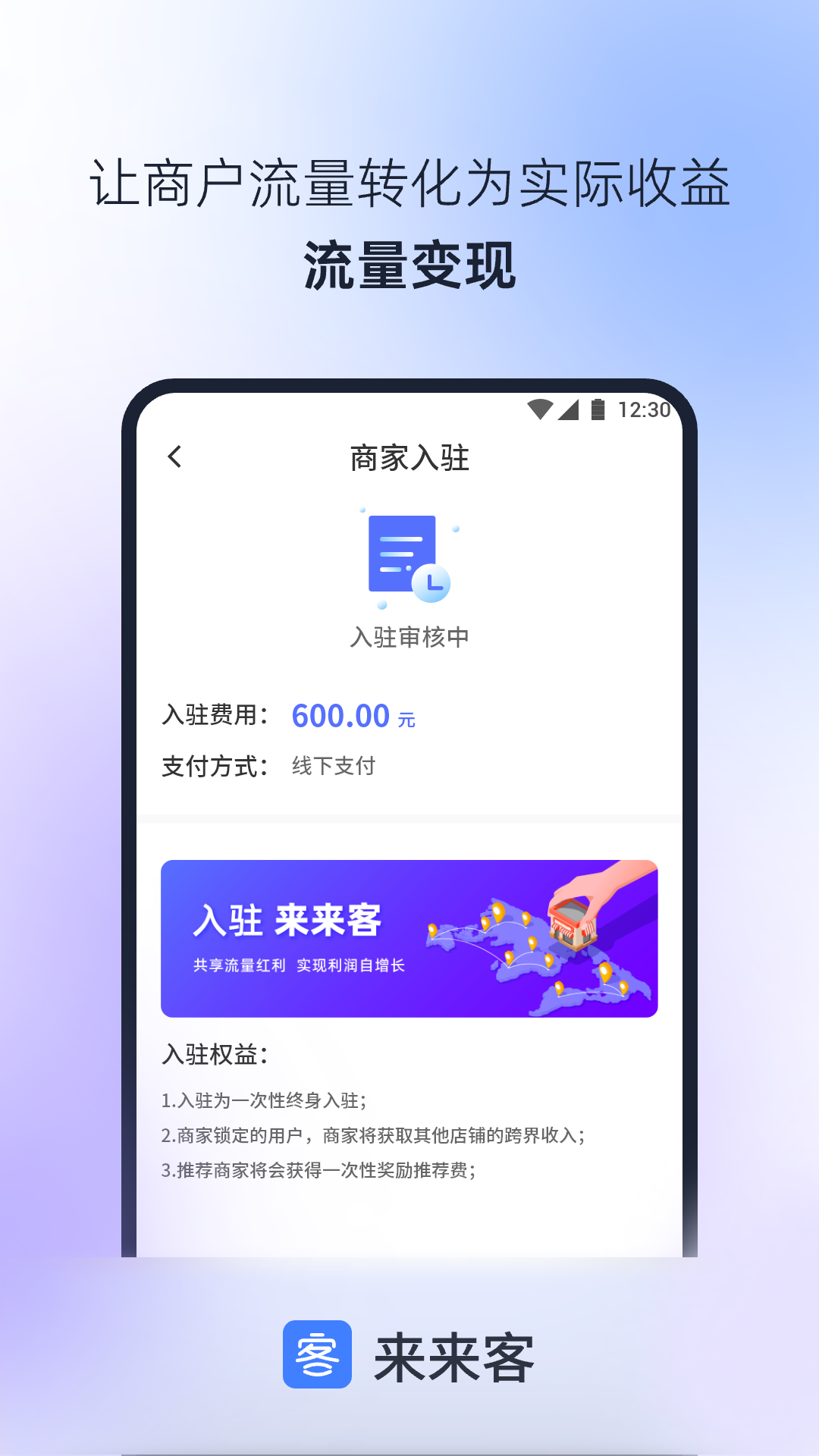 来来客是一款致力于服务个体商户的APP。在来来客平台上,商户无需改变自身的经营方式,消费者也无需改变原有的消费习惯,就能实现流量变现,达成商圈内商户流量的共享,从而实现多方共赢。