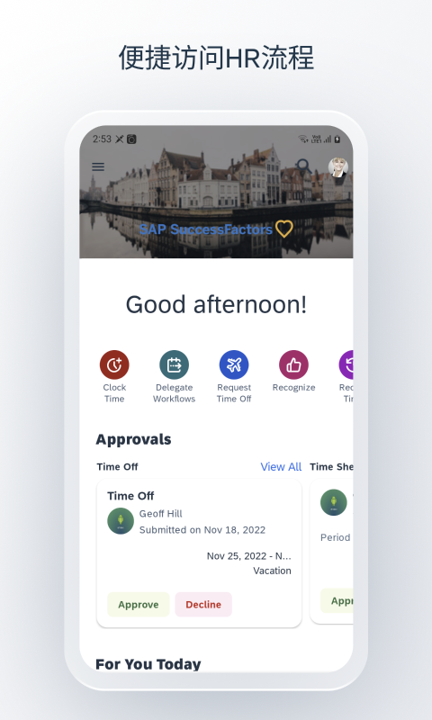 SAP SuccessFactors Mobile这一应用能够在您忙碌奔波之时,为您提供对SAP SuccessFactors解决方案安全且即时的访问权限,进而提升您的业务灵活度。