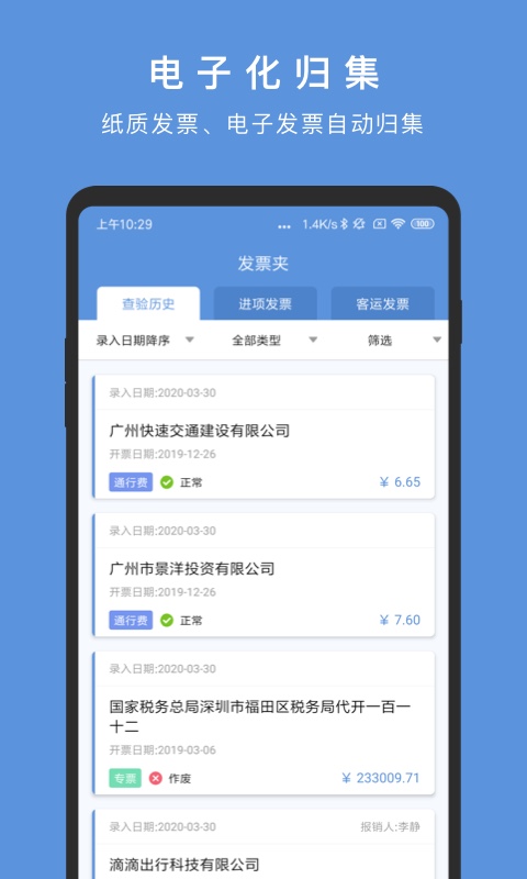 5. **电子化归集**:所有类型的发票均支持电子化归集,能够保存发票的电子信息和影像信息,方便查询。