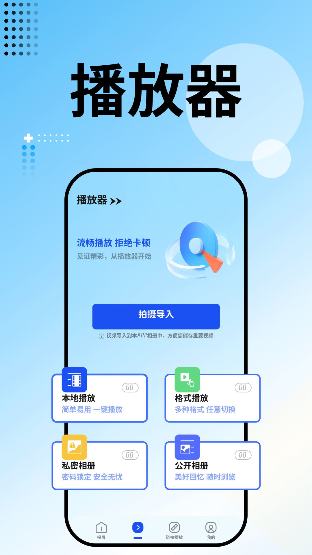 另外,整点视频播放器在视频导入上也很灵活多样,既可以从本地导入视频进行播放,也可以通过拍摄的方式导入视频来播放。