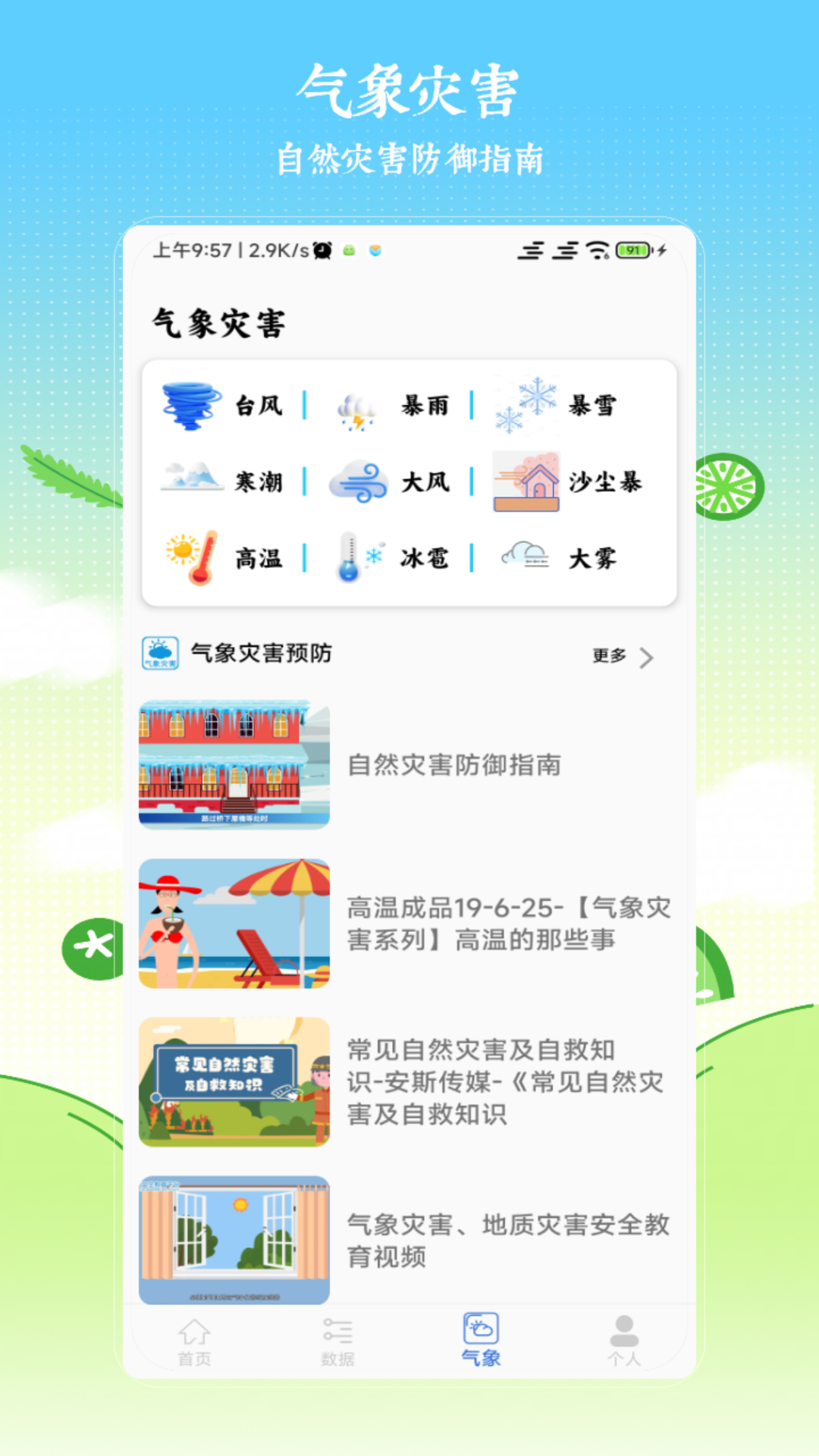 【气象灾害预警】异常天气情况及时提醒,帮助您及时做好防范;