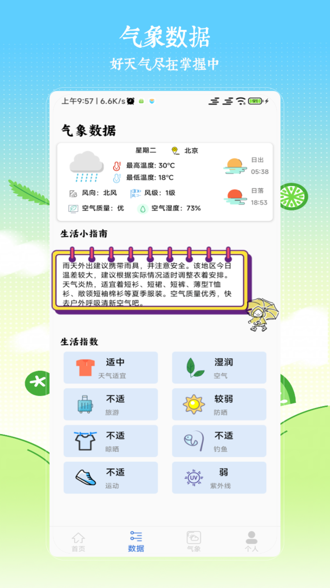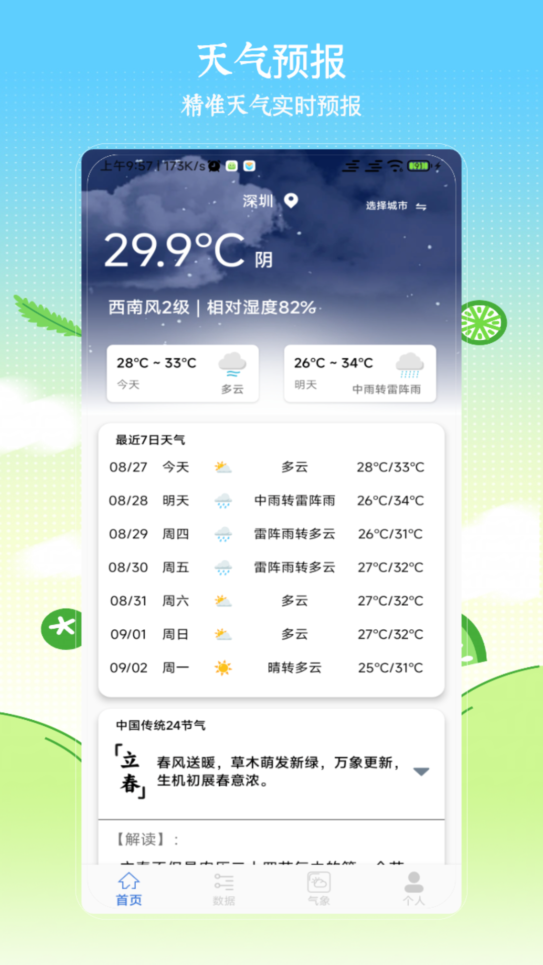 【实时天气信息】实时获取您当前位置的天气预报和空气质量污染指数;