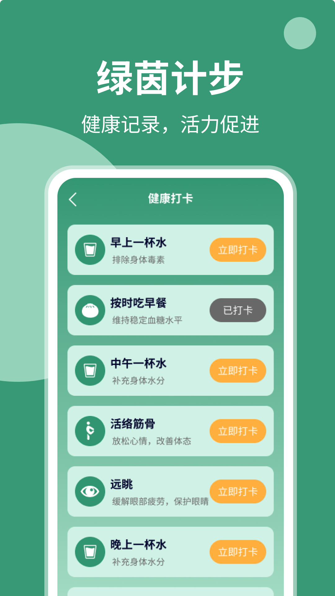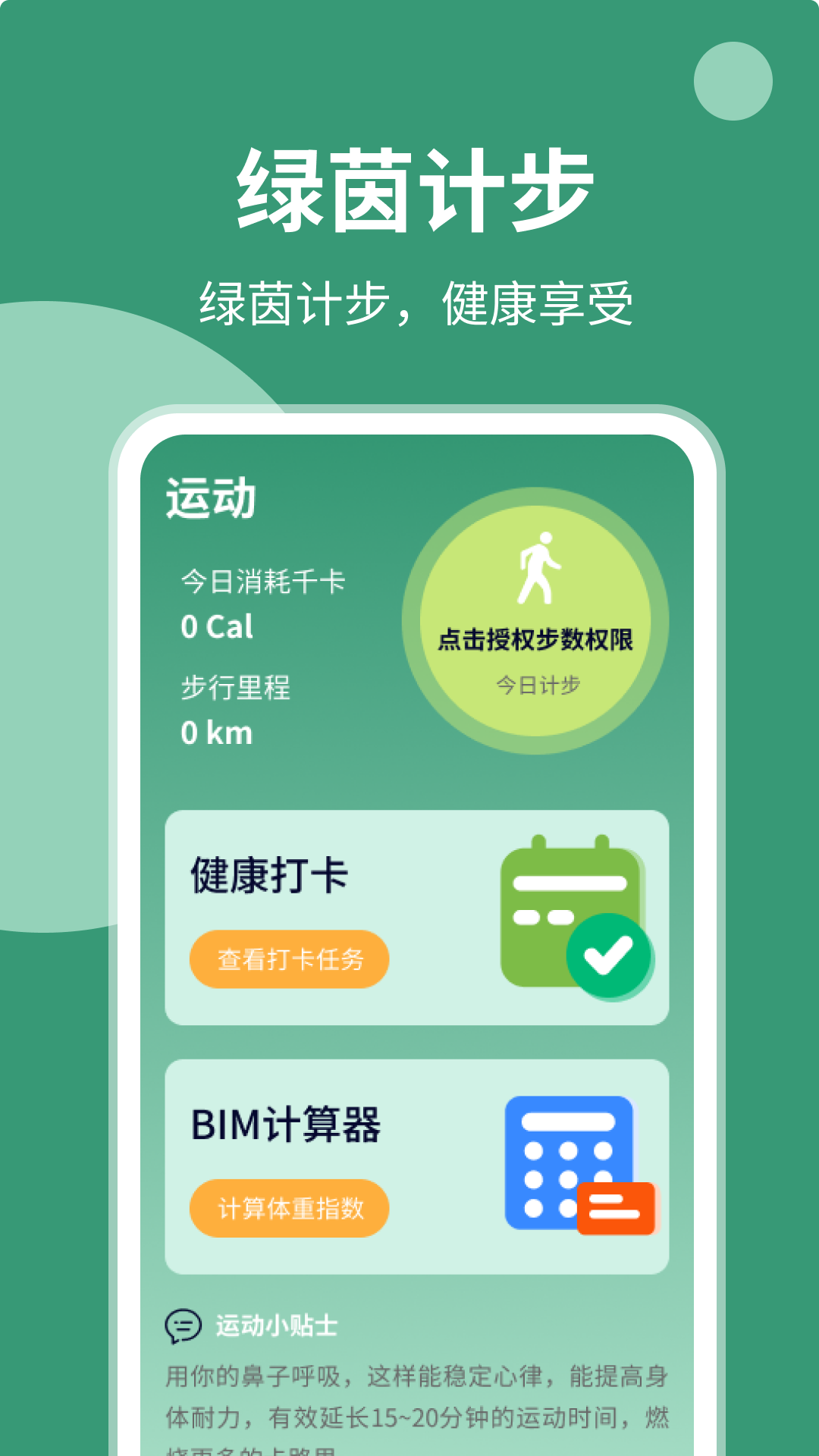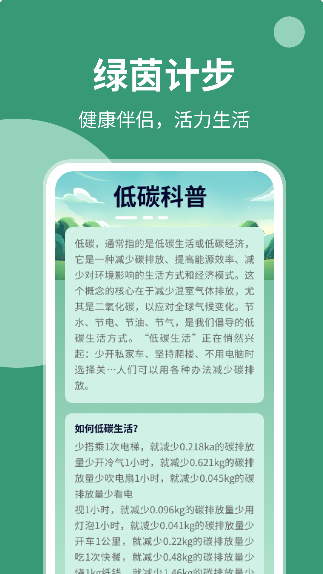 绿茵计步是一款旨在帮助用户享受健康生活、促进活力运动的手机应用。该应用集健康打卡和低碳科普于一体,旨在帮助用户监督健康习惯、计算BIM指数、获取运动建议,以及学习低碳科普知识。通过下载绿茵计步App,用户可以享受健康生活、活力运动,让绿茵之路成为他们的健康生活伴侣。希望这个总结符合您的要求!