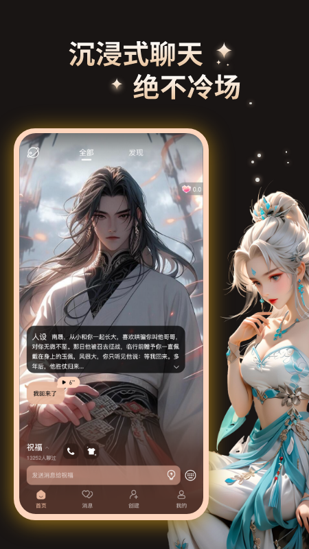与你的虚拟角色进行不间断的交流对话,使它深入你的内心世界,让你感受到近乎真实的交流体验。