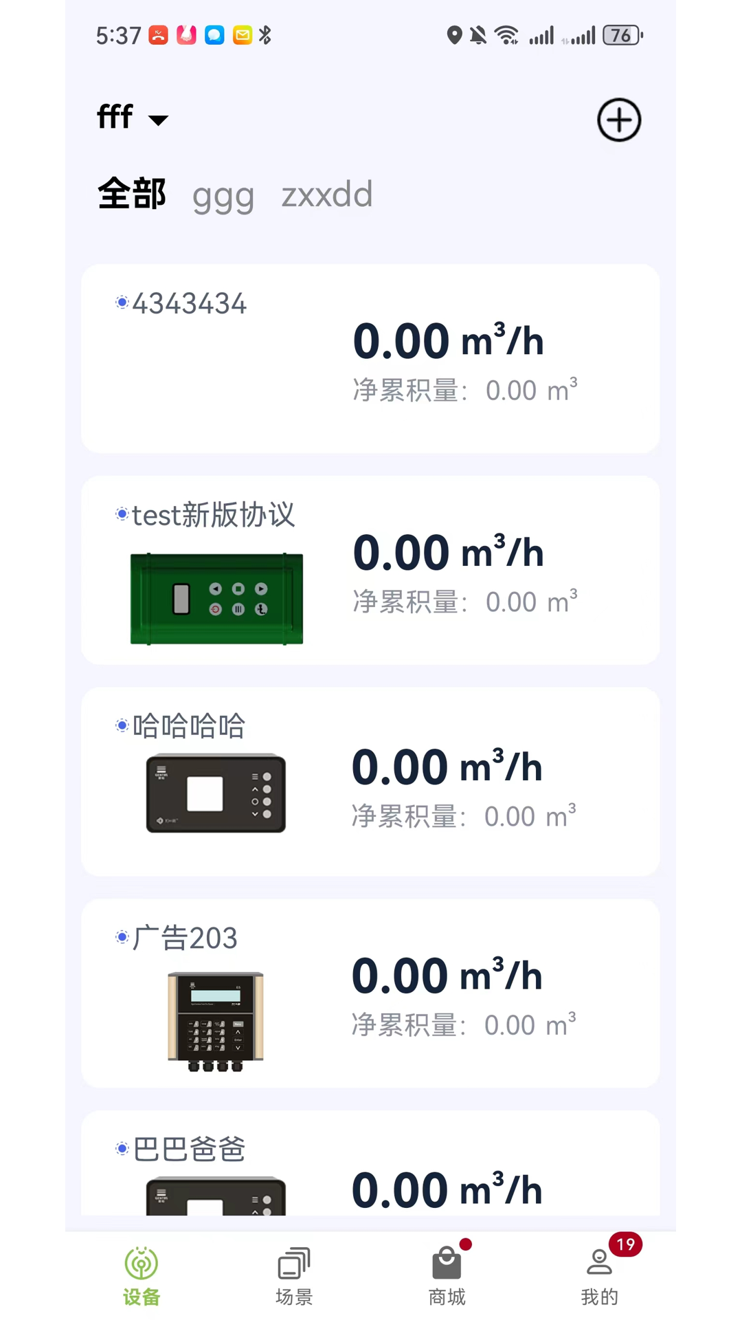 添加和管理fs流量计,超声波流量计,运控球阀,dtu等物联网设备的app
