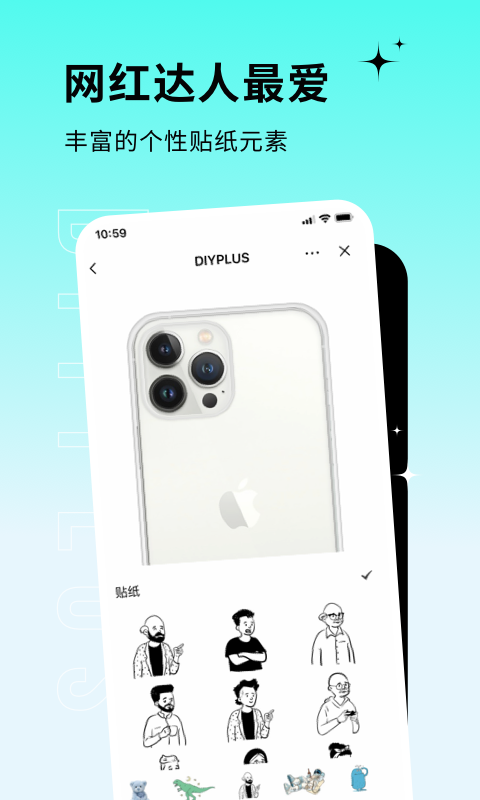 2.多种多样构图精良的贴纸,便于你快速实现你的创意。