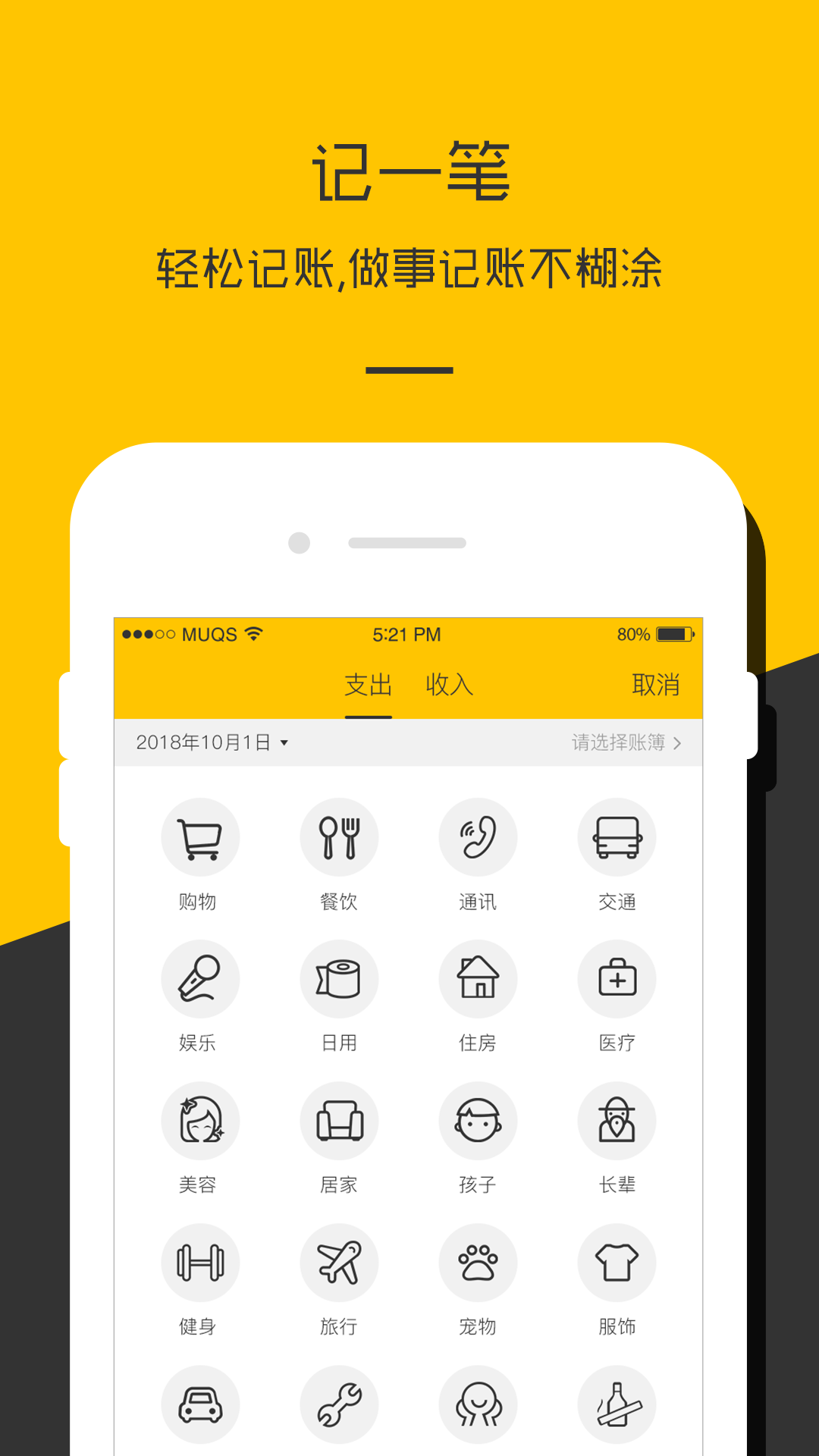 ★记账轻松,操作便捷,仅需三步(第一步选择收入或支出,第二步选择统计类型,第三步输入金额),短短3秒即可完成记账!