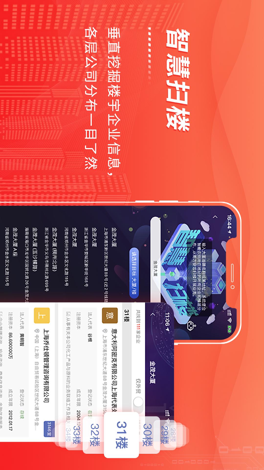 4.智慧扫楼:输入大厦名称轻松展示所在大楼的所有企业。
