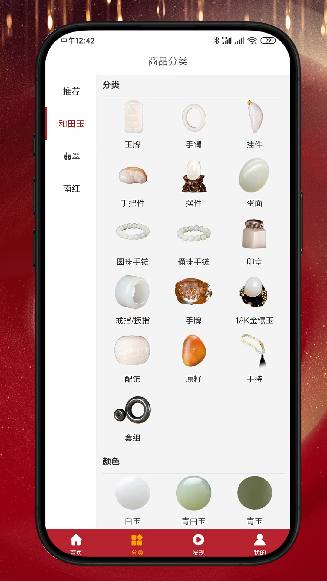 【品类】品类可由玉牌、手串、手镯、手把件、摆件、手链、耳环、印章、扳指、配件等多维度选择