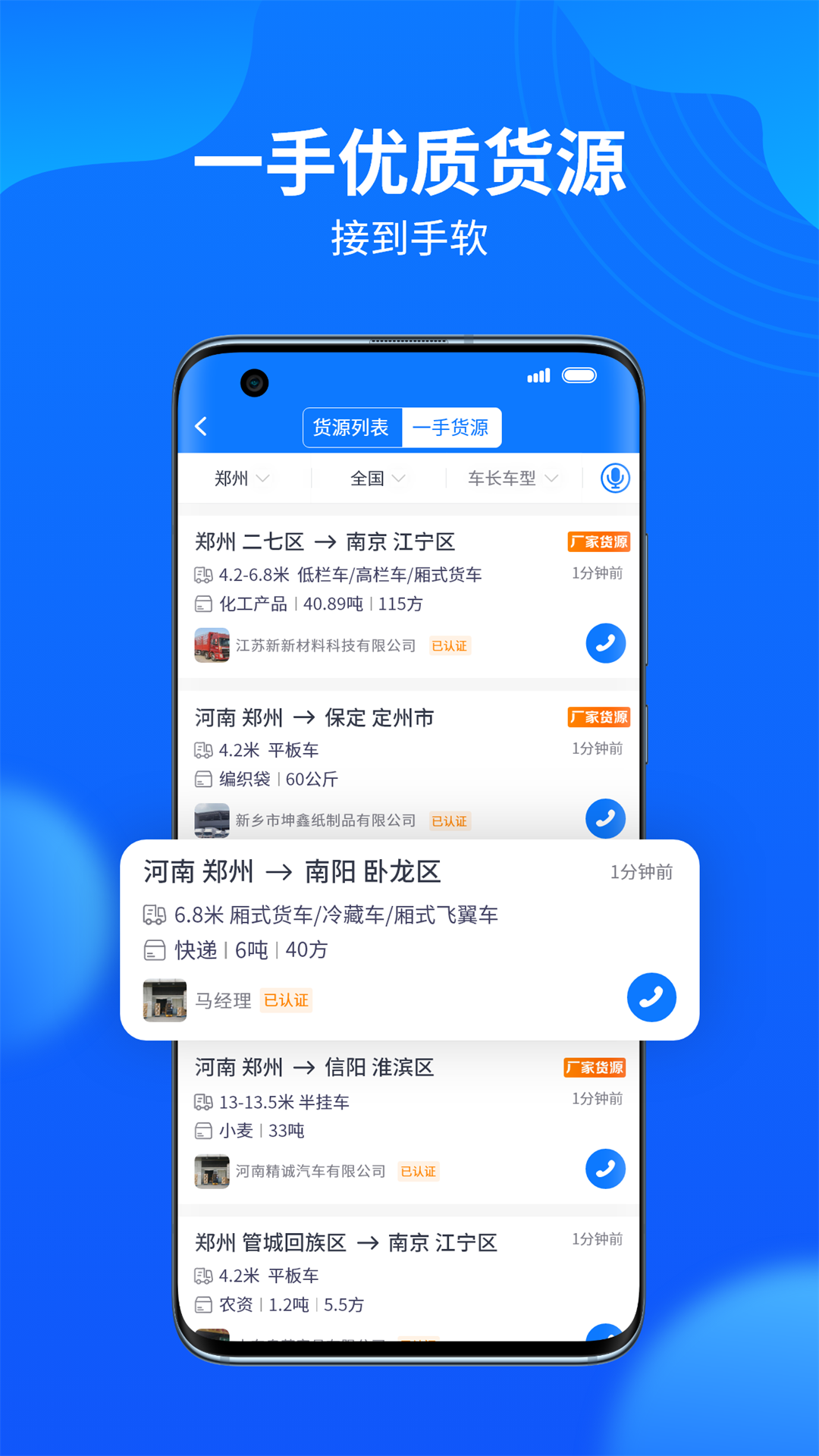 - 发布车源:可以添加车辆、发布车源、设定常跑路线,让发货企业能够更轻松地找到您。