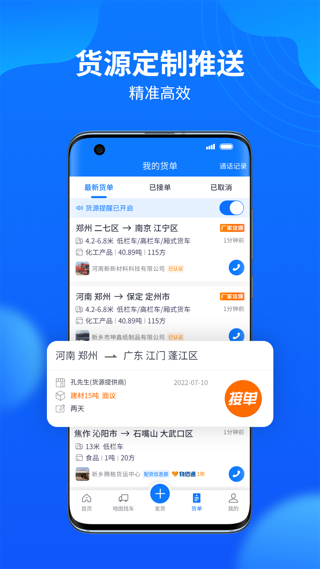 物通网配货经纪人,拥有一手实时货源以及认证真车库,这使得找货、配货、调车接单变得更加轻松便捷!