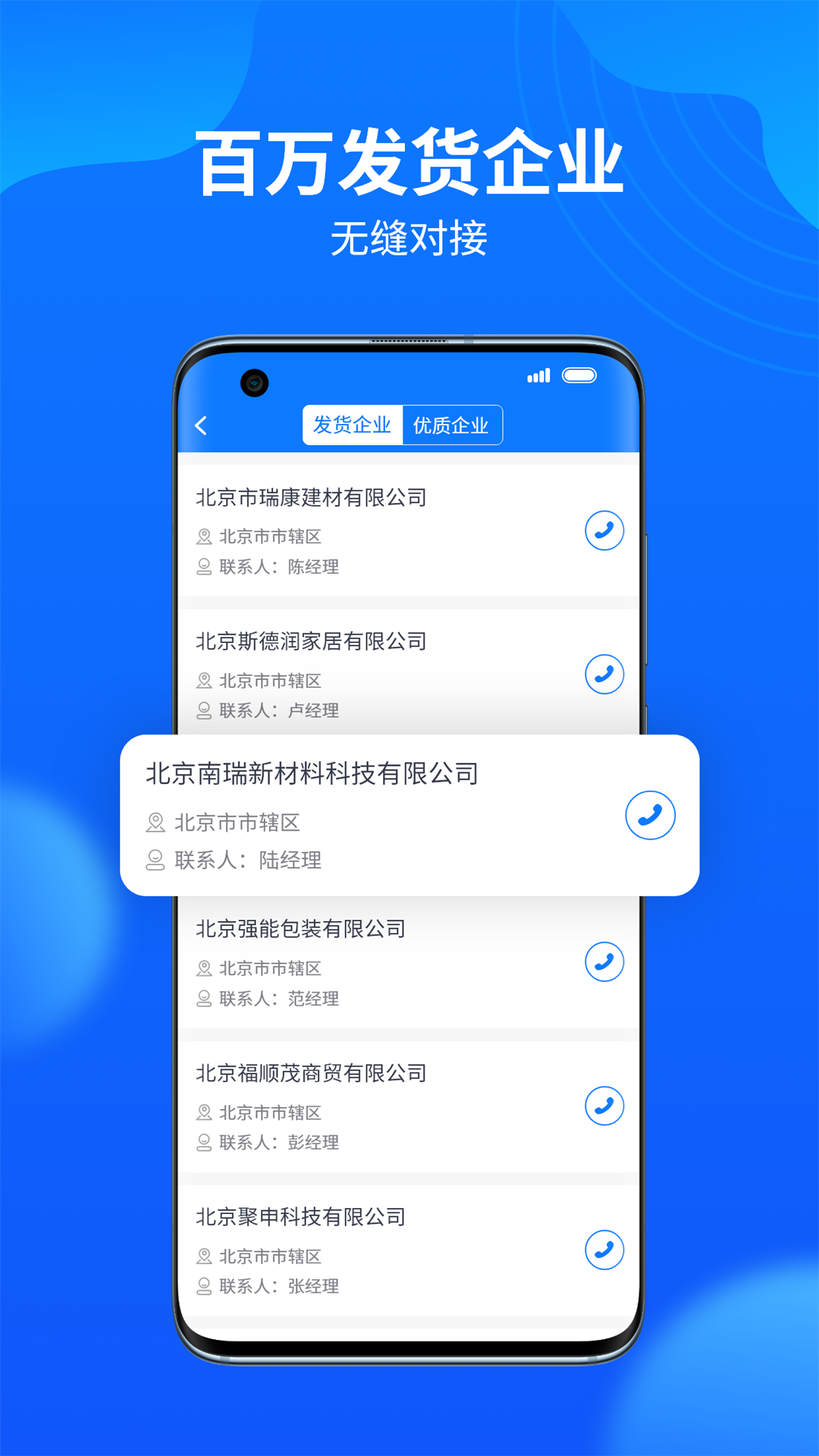 - 找物流专线:通过地图和列表查找全国的物流专线,零担配货更加容易。