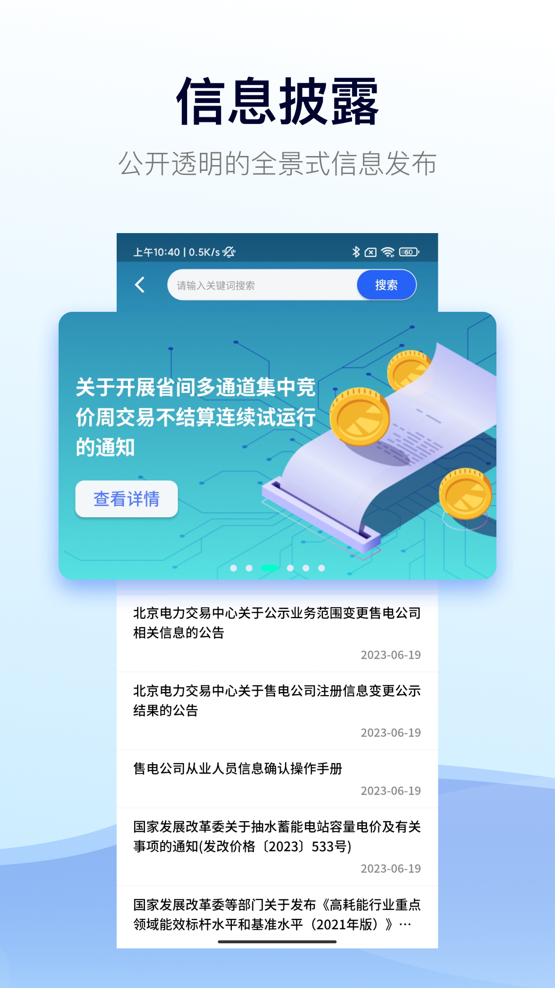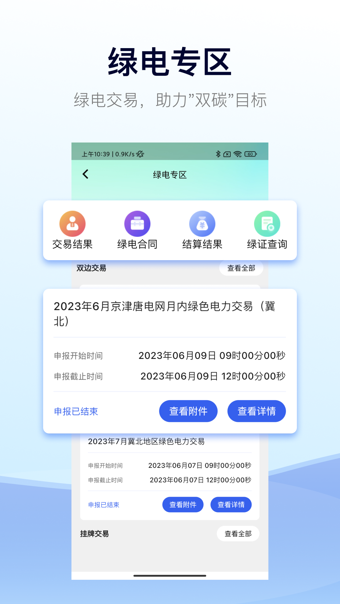 e-交易App是北京电力交易中心有限公司推出的一款专业移动应用,致力于为电力交易市场用户提供全方位的服务。通过套餐引擎和用户画像运营,实现灵活、便捷的电力交易体验。用户可以参与双边协商和零售交易,享受移动交易服务的便利。而独特的亮点是提供绿电交易和绿证交易功能,推动可持续能源交易。通过信息披露和视频快讯,及时发布市场动态和政策法规,为用户提供有价值的信息服务。安全可靠的交易环境保护用户的隐私和交易数据。立即下载e-交易App,尽享优质、高效的电力交易服务。