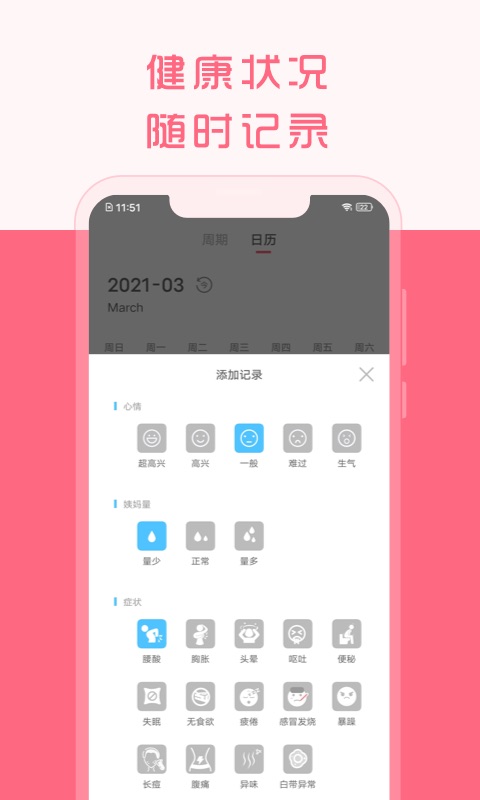 根据科学的预测和周到的提醒,帮你做好避孕或备孕的准备,让经期不再尴尬。