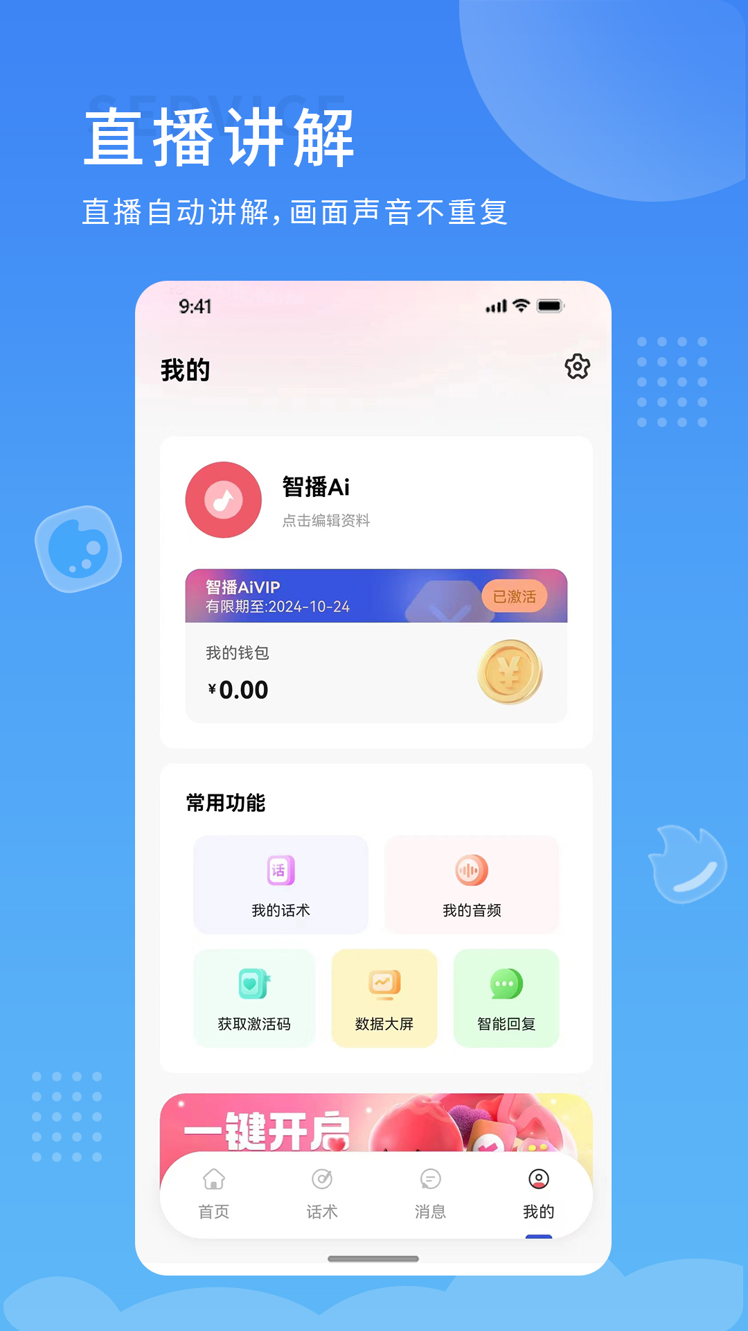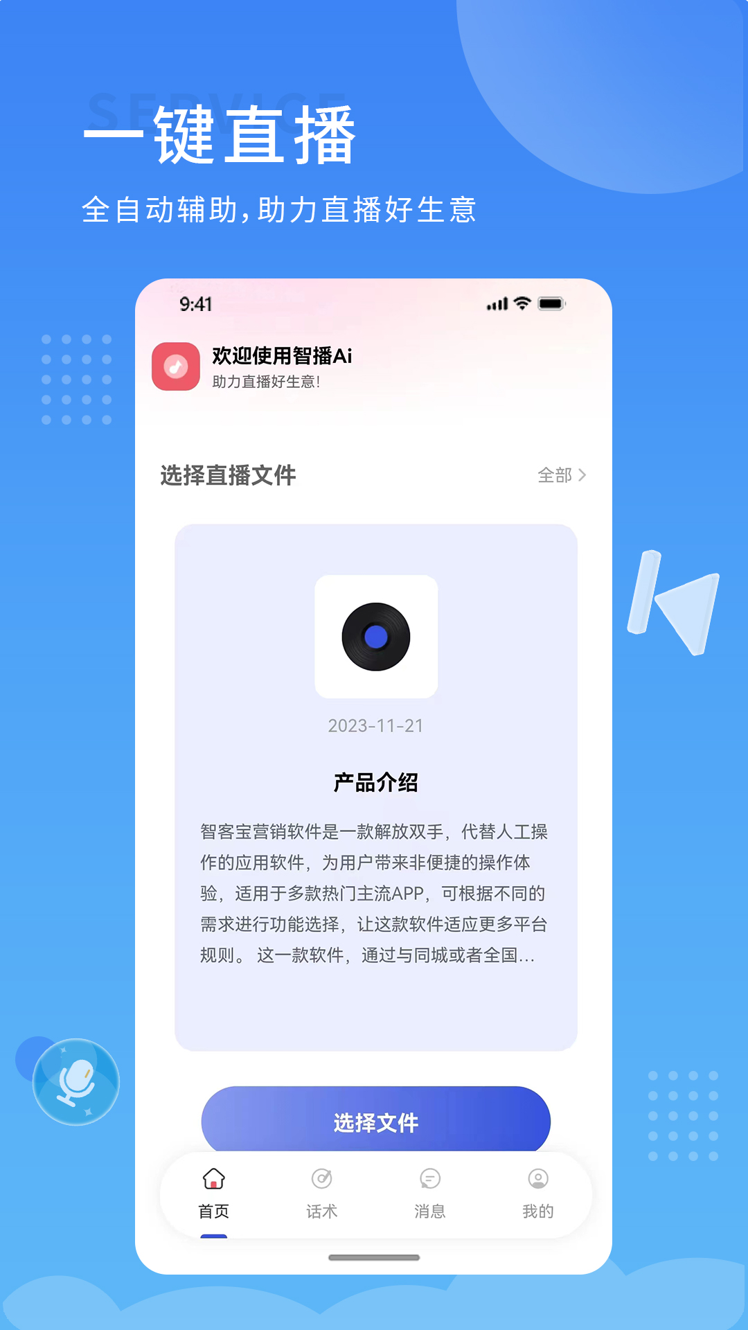 智播Ai是一款用于辅助手机直播的工具。当用户在第三方平台开展直播活动时,能够借助智播Ai来播放音乐或者录制音频,这样便能够更出色地与直播间里的用户进行互动,达成沉浸式的直播感受。智播Ai还为用户提供覆盖全行业的直播间讲解话术,用户无需自行撰写直播脚本就能直接使用。