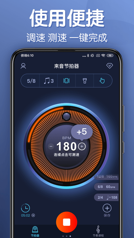 开启闪光灯和震动模式后,您能够更直观地感受到节拍器带来的超强节奏感。
