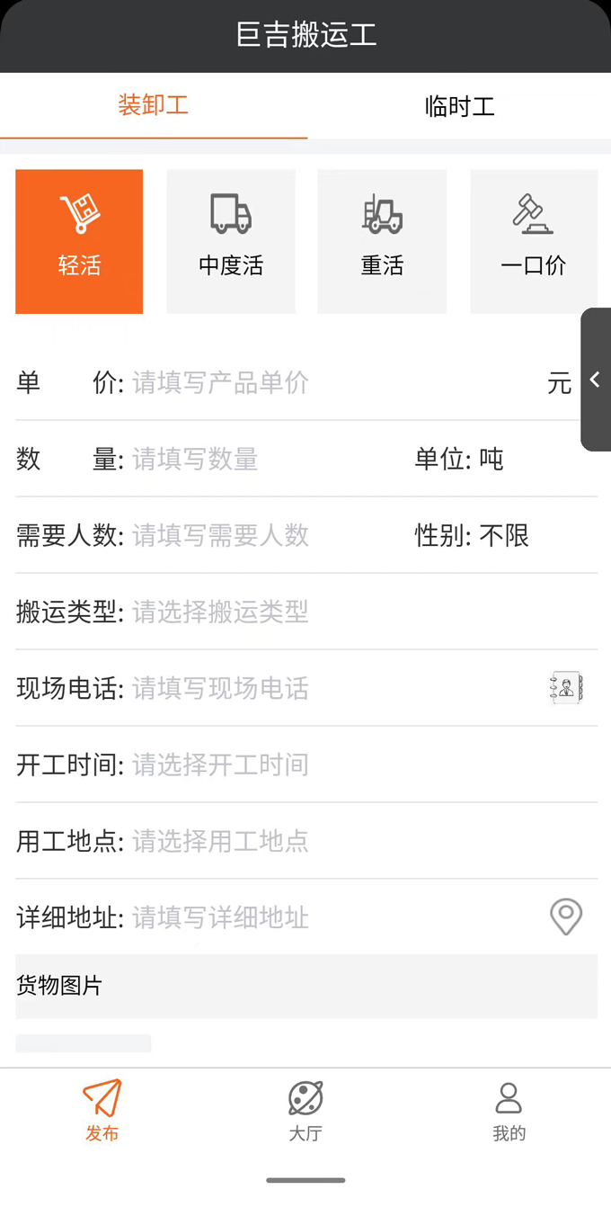 “巨吉搬运工”APP是由上海巨吉物流有限公司精心打造而成的。这款APP专注于为用户提供高效且便捷的装卸服务,在该APP上,用户能够轻松地下单预约专业的搬运团队。这些搬运工都有着丰富的经验,他们有足够的能力安全并且快速地完成各种各样的搬运任务。