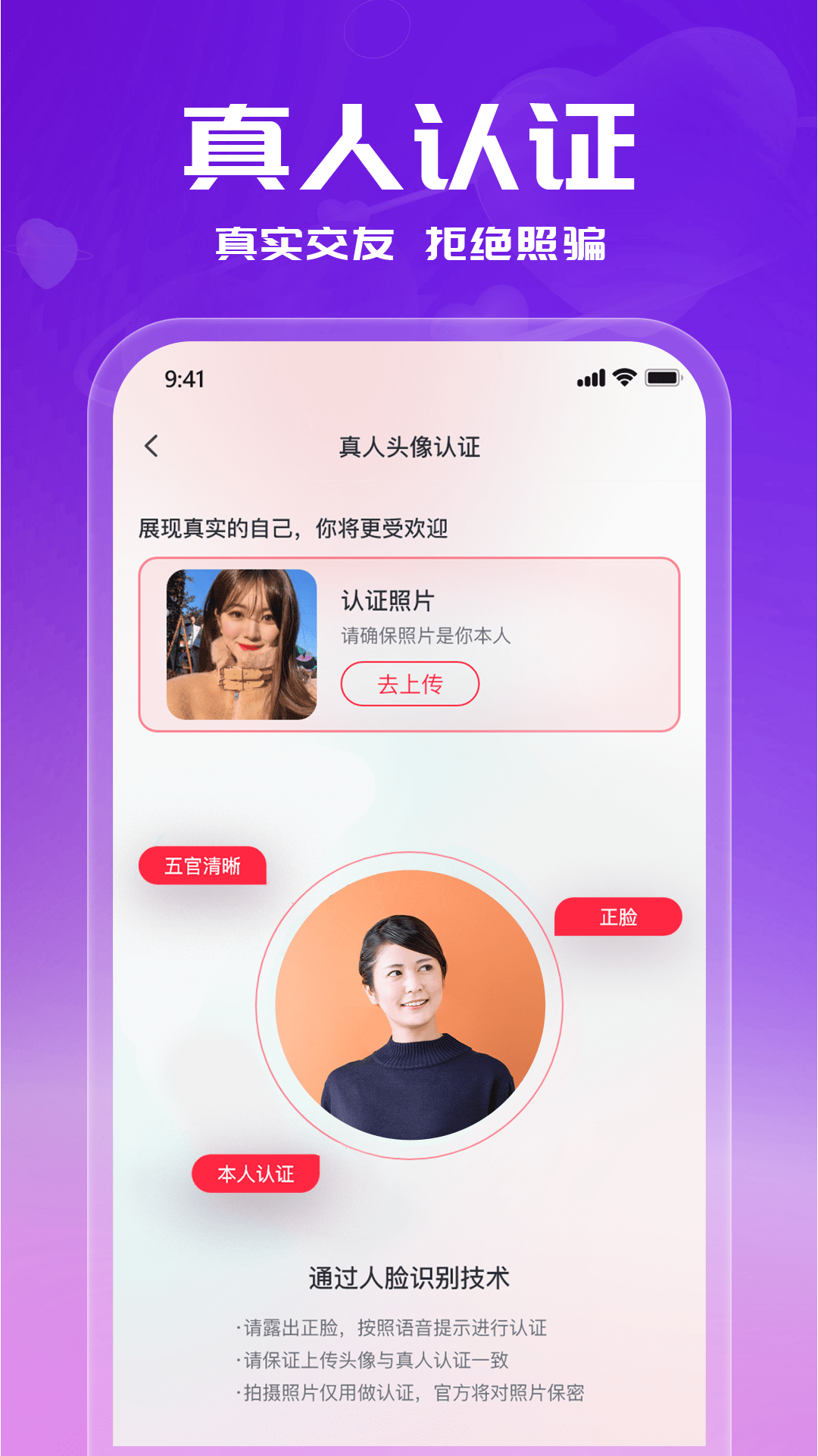 【多重认证】真人、实名双重认证,智能机审+人工复审,头像就是本人,你约见的TA就是真实的TA。