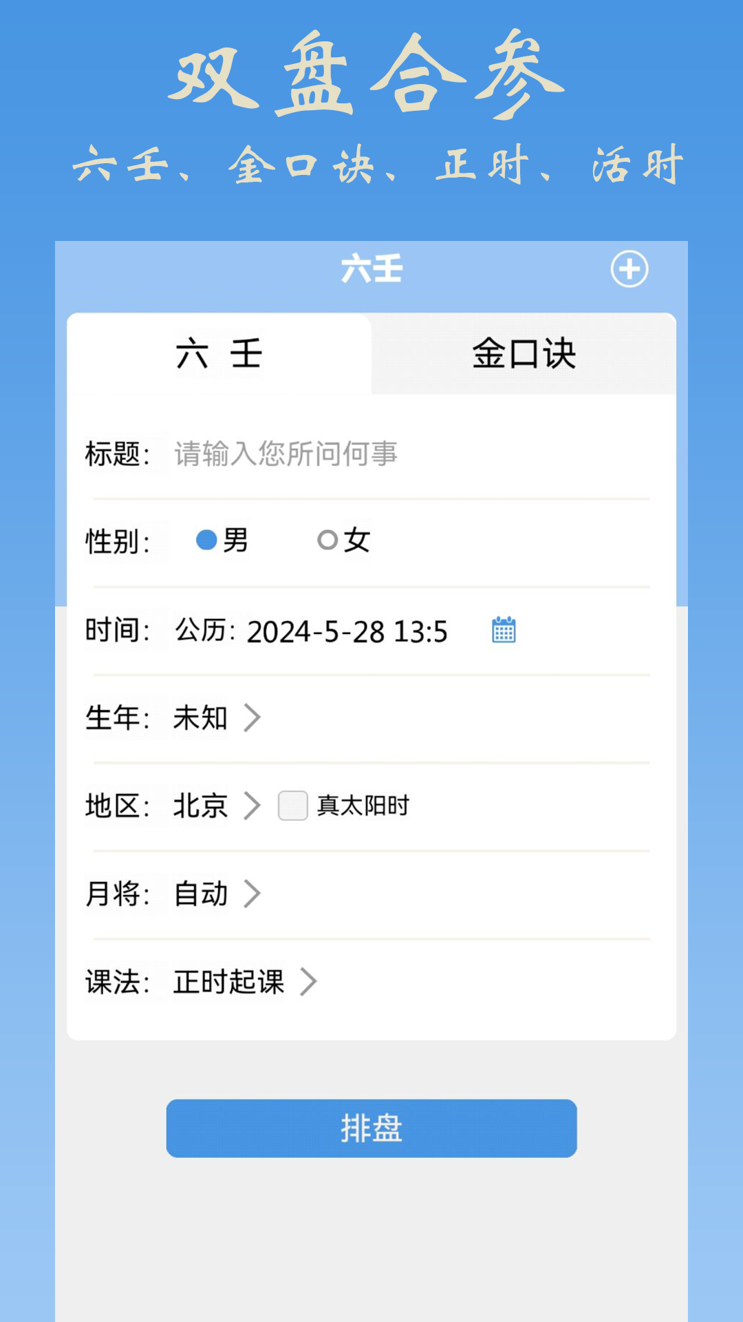 大六壬金口诀排盘