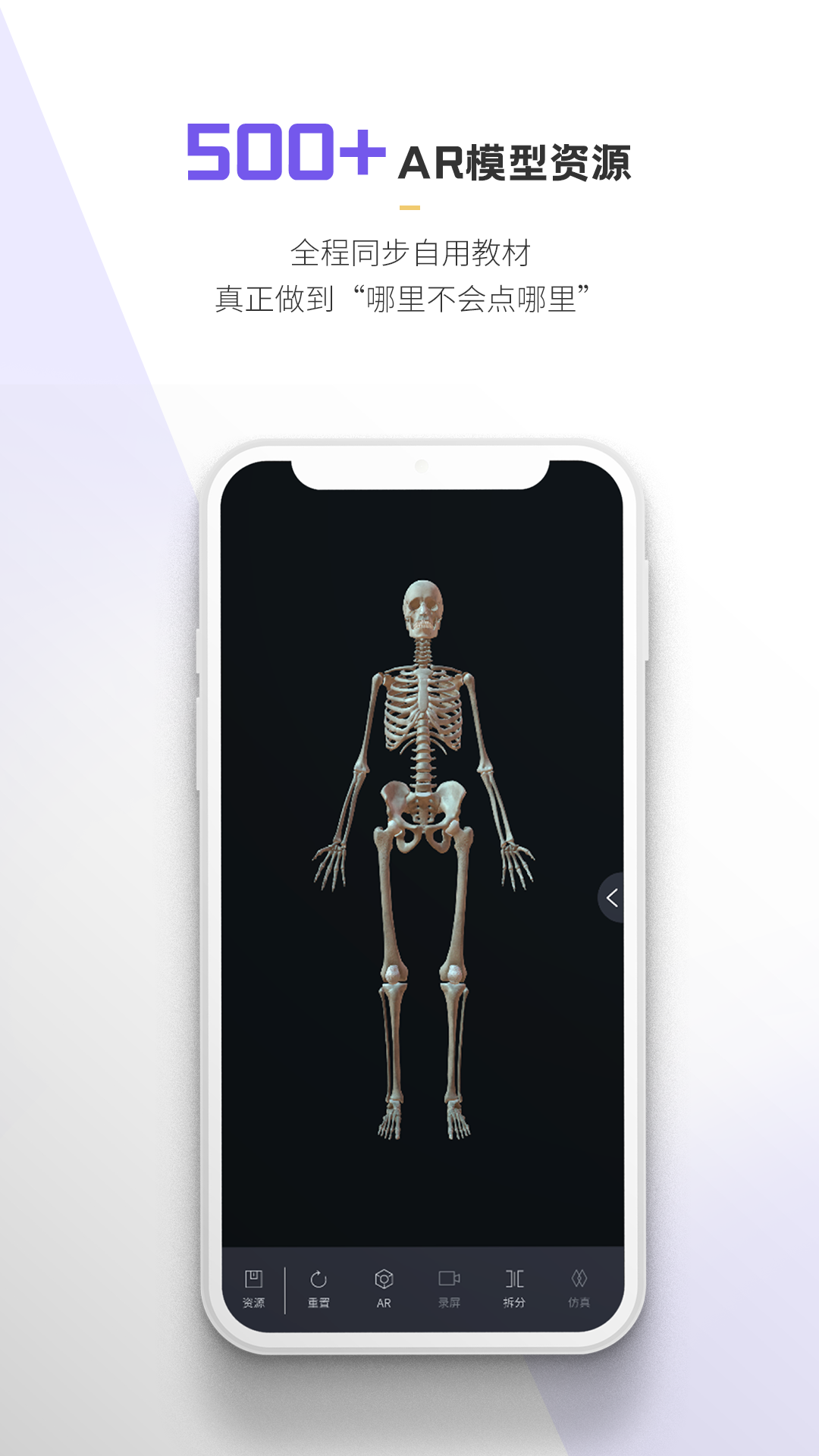 其一,拥有500 +的AR解剖模型资源,并且全程与自用教材同步,这使得医学生能够轻松实现“哪里不会点哪里”的便捷学习。