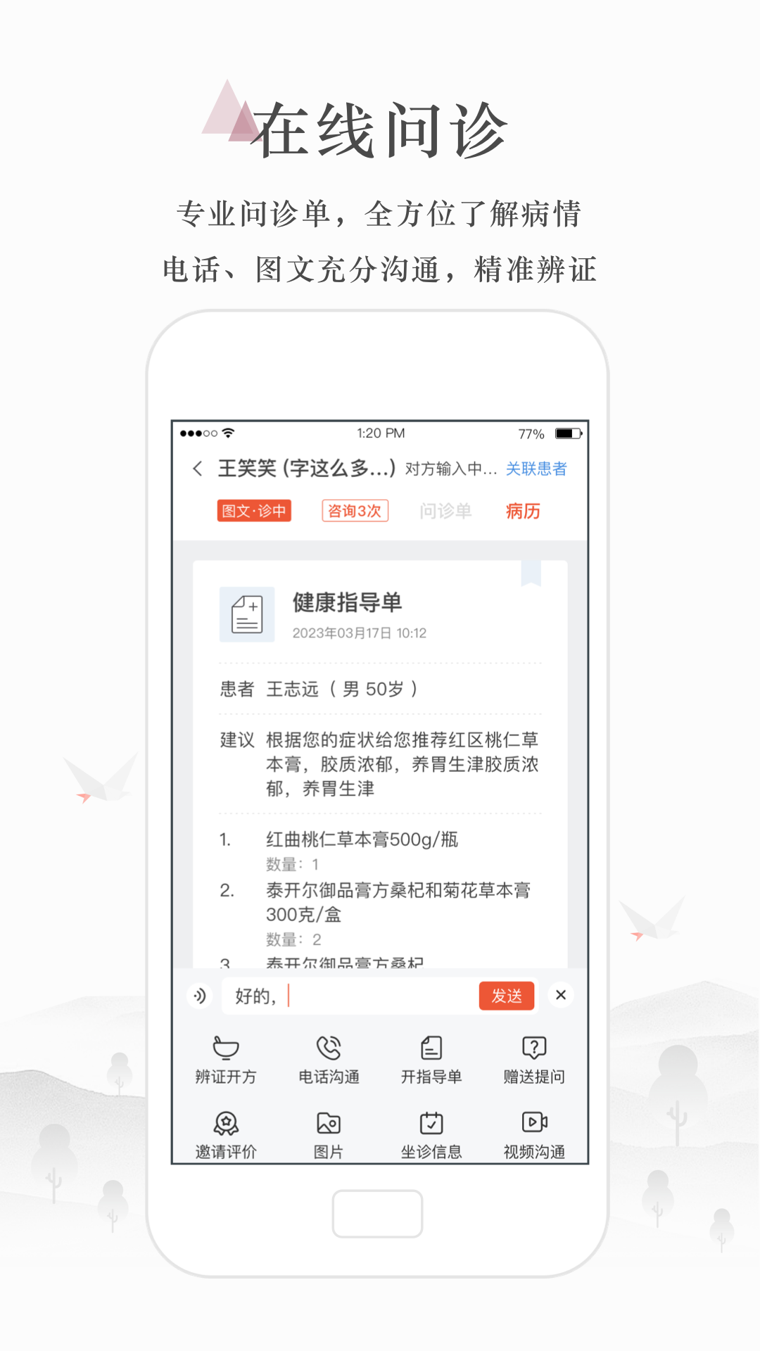 小鹿中医秉持“让中医更美好,让生活更健康”的使命,全力构建一个以“智慧分诊、线上问诊、线下面诊”为核心的全场景、一站式中医服务平台。在发展过程中,遵循“好中医,放心药”的原则,对入驻医生的资质进行严格审核,并且持续提升药品供应链能力,以此保障为患者提供安全优质的服务。