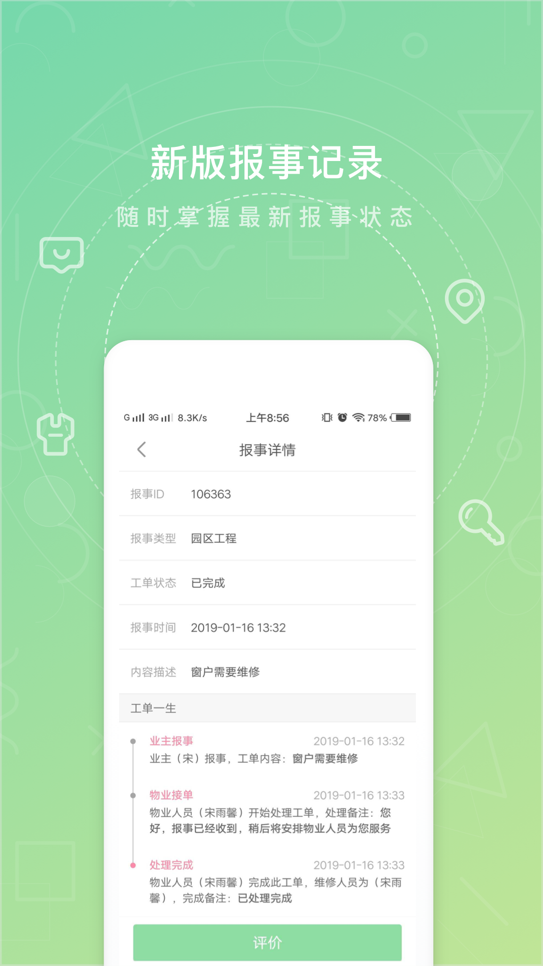 【在线报修】众乐家的用户能够借助APP轻松进行在线报修。报修之后,物业端也可通过该APP完成派单与接单操作。当维修工作结束时,系统会向业主推送通知消息。