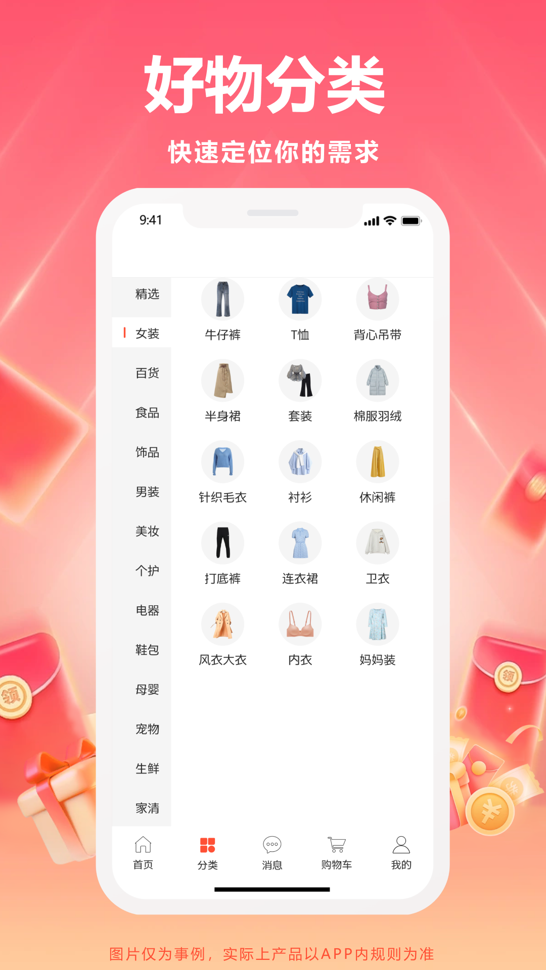 淘鱼商城,这是一款专注于各类主流商品经营的线上购物软件。在这里,商品种类极为丰富,涵盖了从美妆到鞋帽,再从数码产品到箱包等众多品类。而且,它还支持商品的3D展示,无论是试穿服饰还是预览其他商品,都能为用户带来超级逼真、超乎想象的视觉体验。
