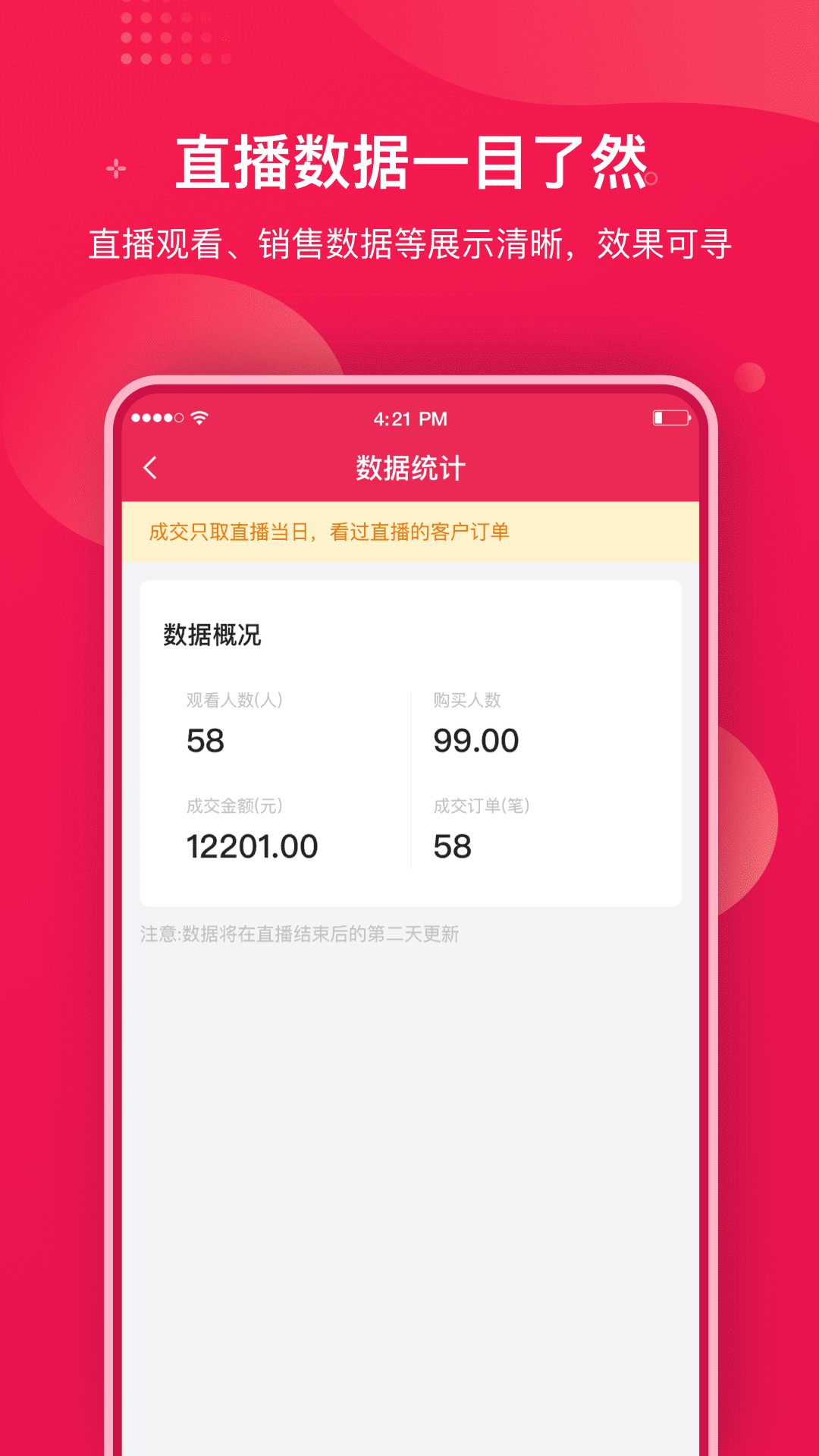 直播观看人数、销售数据等信息展示得非常清晰,让你一眼就能看明白。