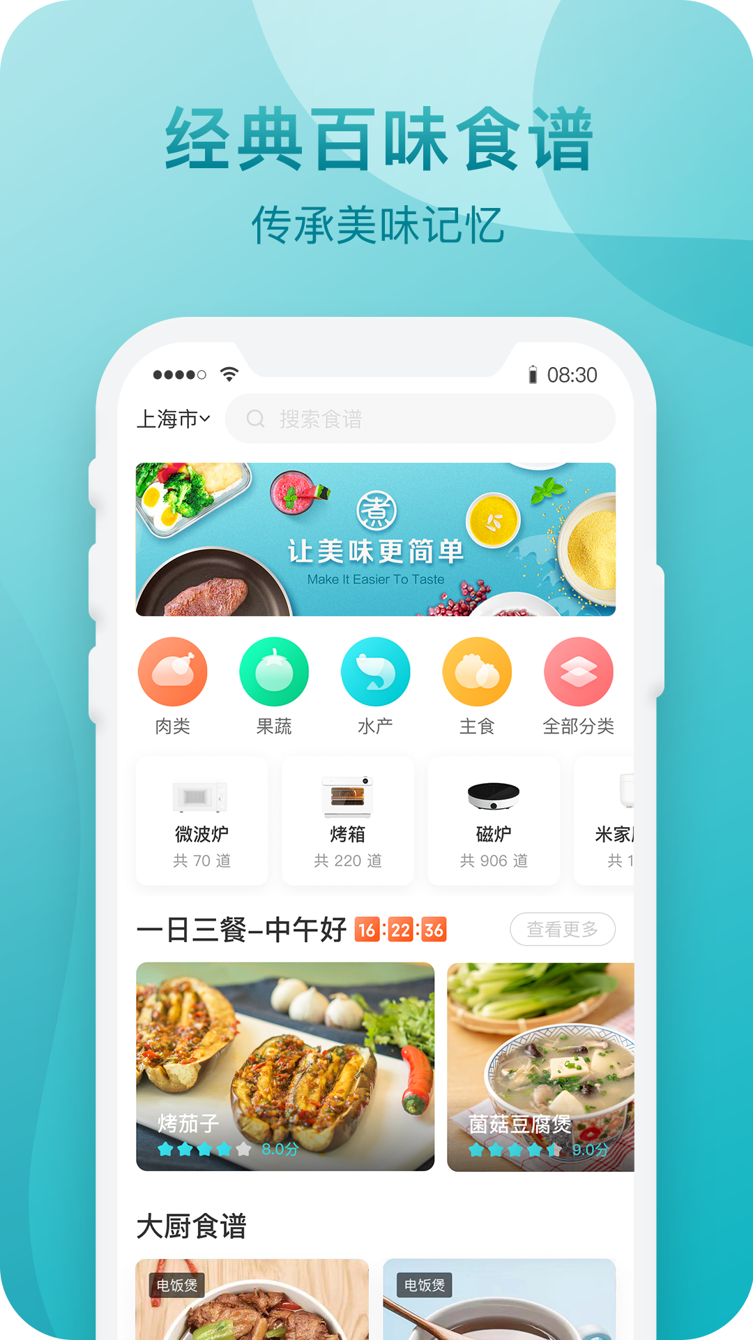 APP中的智能食谱配备了定制的烹饪曲线,哪怕是厨房小白,也能轻松驾驭厨房;这里有上千道专业食谱,可激发你的烹饪创意;摄区板块的美食分享,能让你与其他达人愉快互动;节气活动、积分活动等多种福利活动更是惊喜不断,等你来体验。