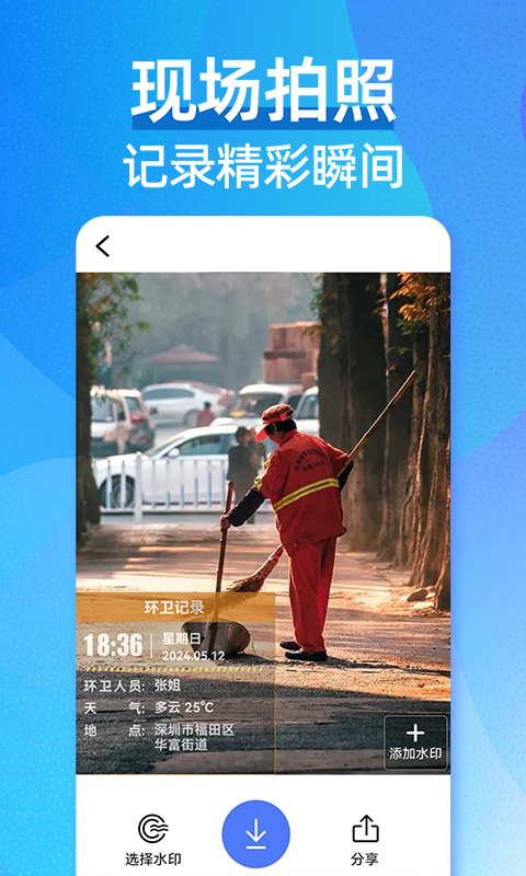 每日水印:用户能够设定每日打卡,此应用会自动对每次打卡的时间和地点进行记录,这对追踪工作进度十分便利。