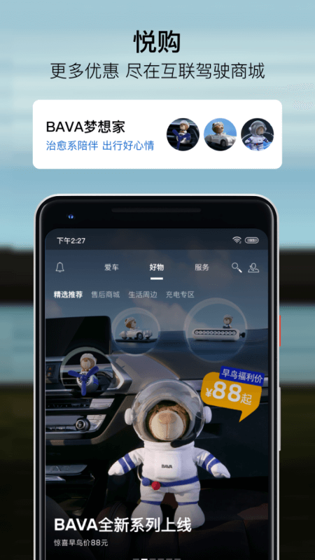 服务板块:这里提供全方位的用车服务,您可以在线预约服务。并且能轻松进入电商平台,包括新车商城、售后商城以及互联驾驶商城。