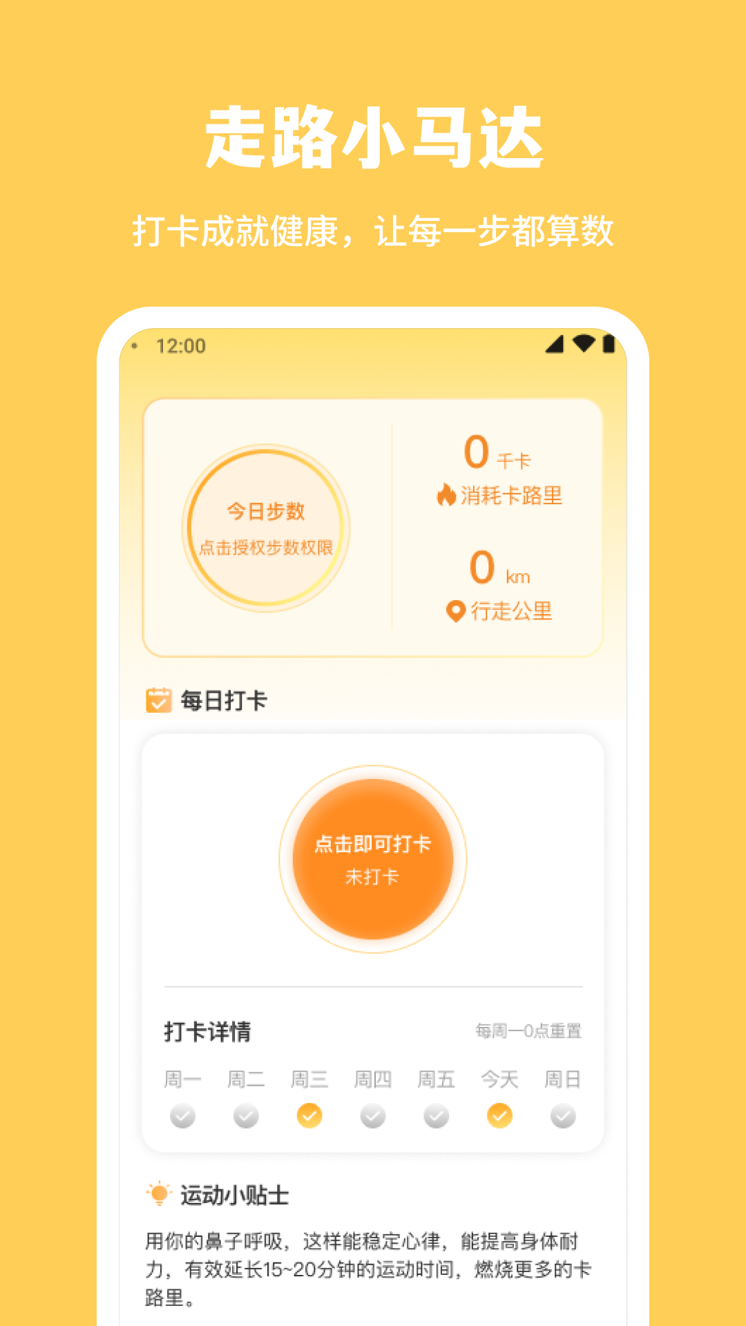 走路小马达APP是一款集健康监测与生活指导于一体的智能应用。它通过精确记录您的步数,计算行走距离和消耗的卡路里,该应用还提供每日打卡功能,智能计算每日所需卡路里,为用户的健康生活提供科学指导。还包含丰富的运动小贴士,让您在享受步行乐趣的同时,也能获得专业的健康建议,让每一步都成为健康生活的坚实基石