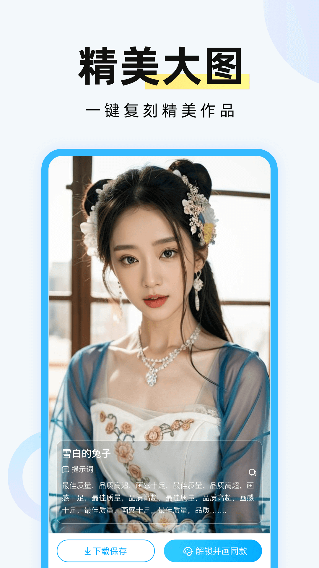 应用中贴心地内置了数千组常用的提示词,内容涵盖画质,镜头,视角,人物,五官,服饰,动作,表情等方方面面。非常便于用户查询和调用。