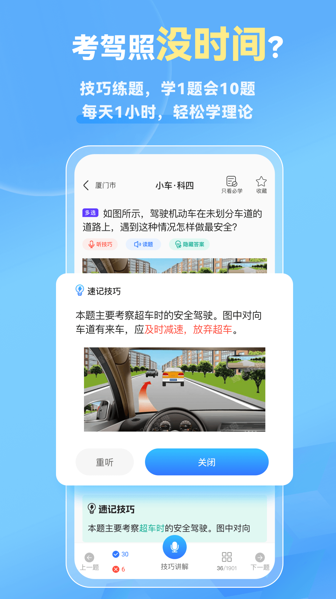 考驾照却没时间?“技巧练题”是个不错的选择。在这里学1题能会10题,每天只需1小时,就能轻松学习驾考理论知识。