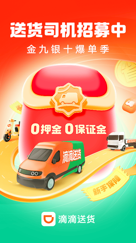 这里是0押金、0保证金的哦,新司机加入还有首月接单保护政策呢!加入的门槛非常低,即便您没有车也能够加入。只要下载滴滴货运司机版,注册成功就能开始接单啦!