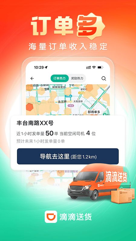 滴滴拥有千万级的庞大用户群,这意味着有充足的货运订单。您只需点击“开始听单”,接单就是这么轻松简单。