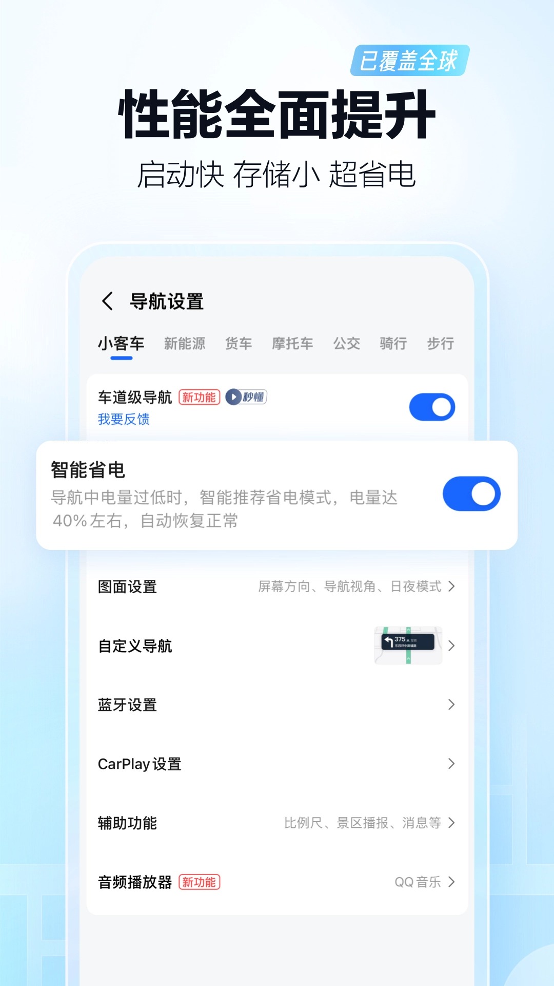 提供包含驾车丶打车丶公交丶骑行丶步行丶货车丶摩托车丶新能源等多种出行方式的智能导航