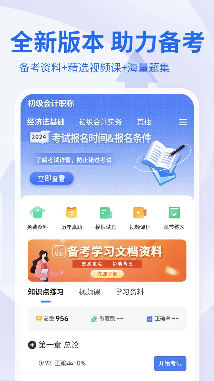 1, 章节练习:针对会计最新教材章节, 提供章节考点练习,快速理解知识点