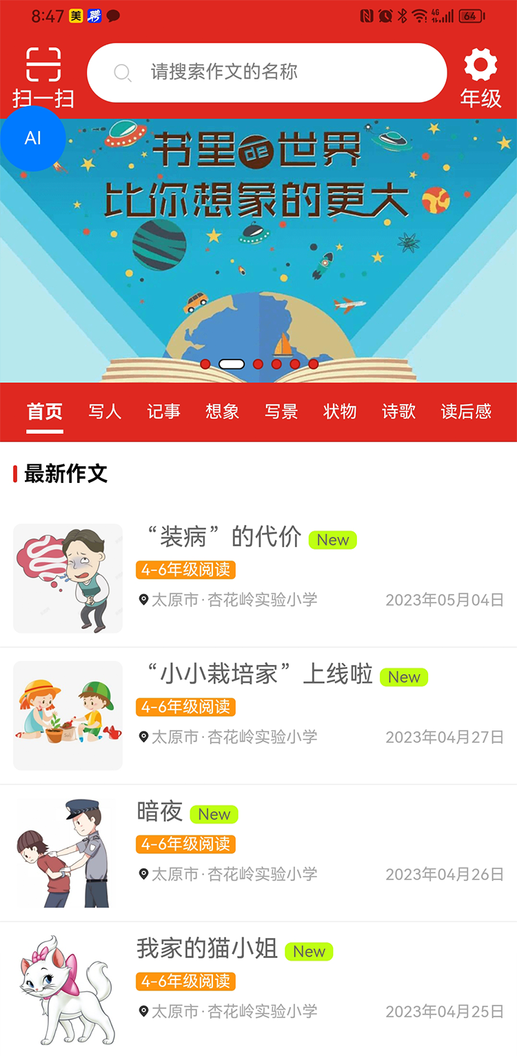 新作文官方推出一款实用的小学在线作文工具,以阅读为切入点来变革写作!这是一款专为小学阶段打造的有声作文应用。该平台的服务对象涵盖学生、家长、老师以及学校。众多小学阶段孩子的家长能够借助网络这一载体,了解《新作文》数字化的读者服务,进而享受到数字产品的差异化服务。