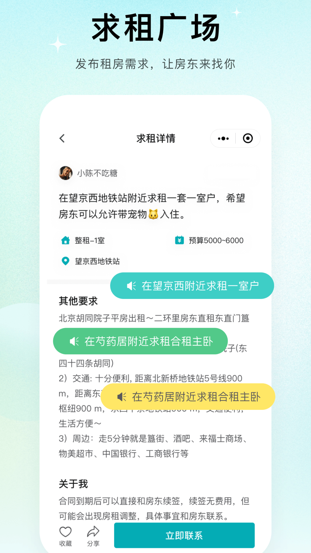 唯果租房是一个完全没有中介费的租房平台,在这儿,您能够直接与房东畅快交流。