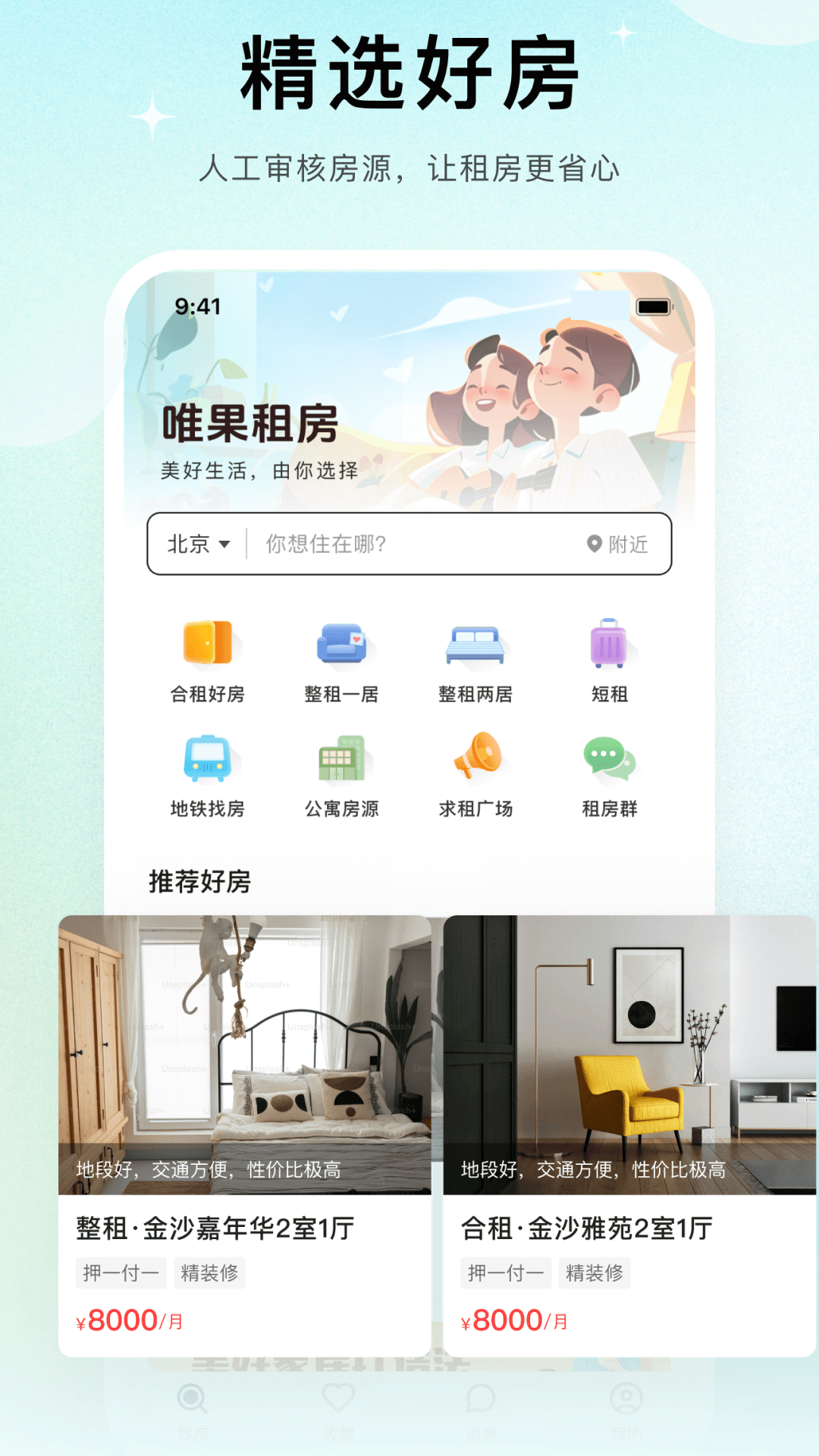平台涵盖多种租房类型,无论是房东直租、合租转租找室友,还是严选公寓,应有尽有。我们始终秉持信息真实的原则,坚决对租房行业内的虚假套路以及潜规则说“不”!