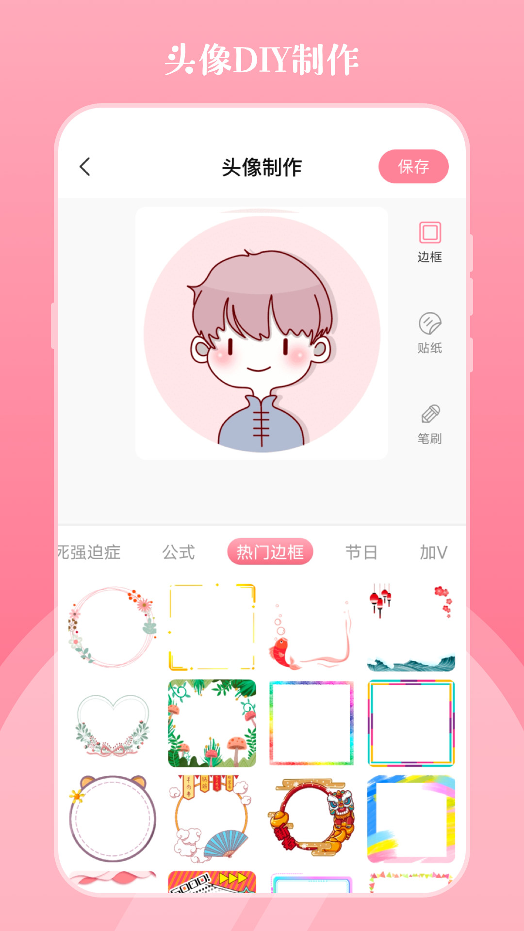 还有卡通头像功能哦。你可以定制一款专属于你们俩的情侣头像呢。只要从相册里选择一张自己中意的照片,就可以开启头像设计之旅啦。在这里你可以添加文字、头像贴纸,给头像加V,还能添加文字边框、强迫症边框或者公式边框,操作简单便捷,轻松让你的头像变得与众不同。